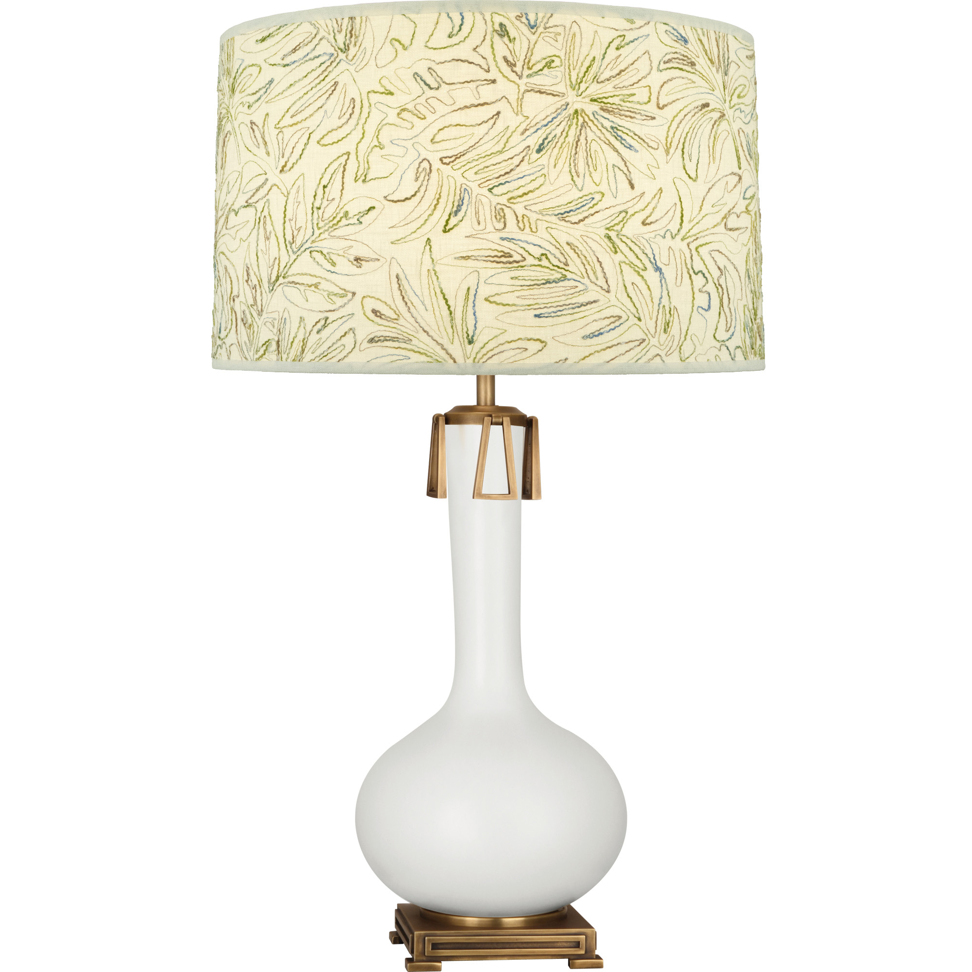 Lily Glazed Ceramic With Aged Brass Accents Athena Table Lamp With Open Weave Heather Linen Shade - Athena combines classic details with a contemporary ceramic body, making this piece truly timeless and versatile!