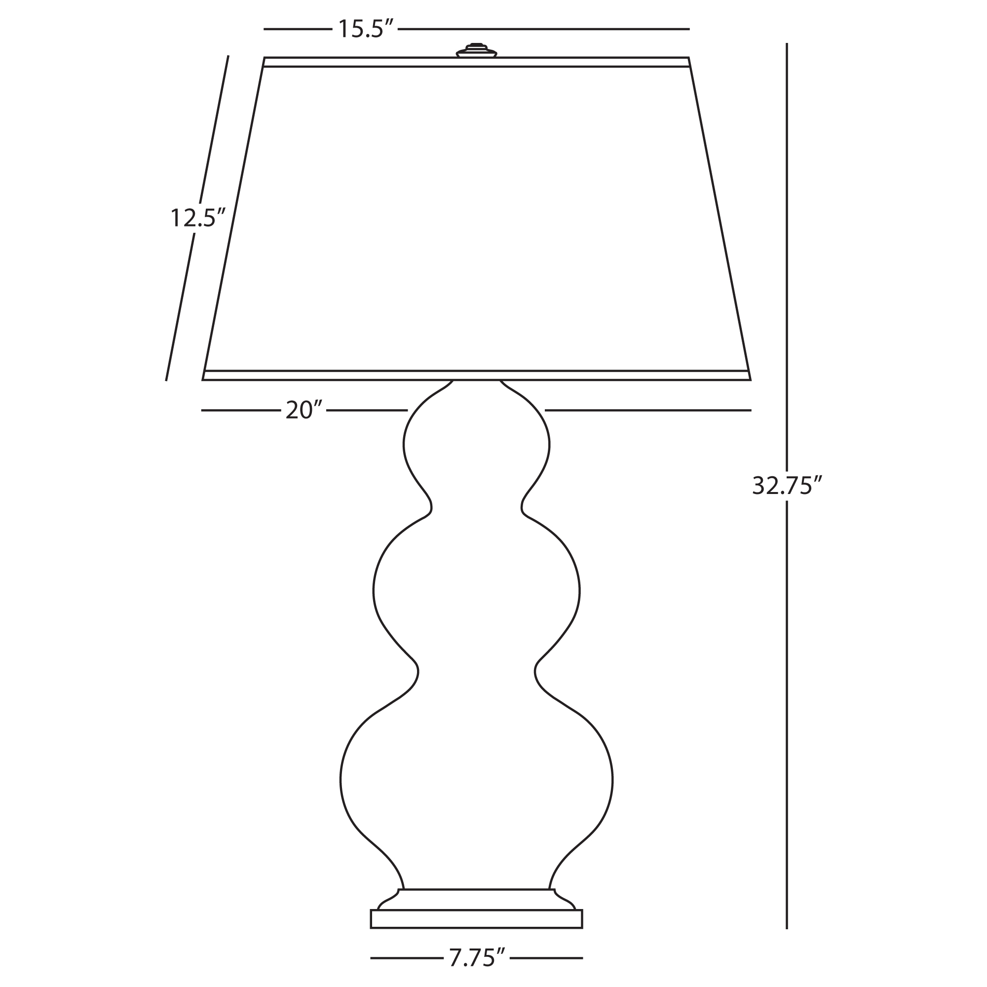 Our Triple Gourd collection features a simple but gracefully curving silhouette. Available in a wide array of vibrant colors and several different base finishes. - Midnight Blue Glazed Ceramic With Antique Silver Finished Accents Triple Gourd Table Lamp With Pearl Dupioni Fabric Shade