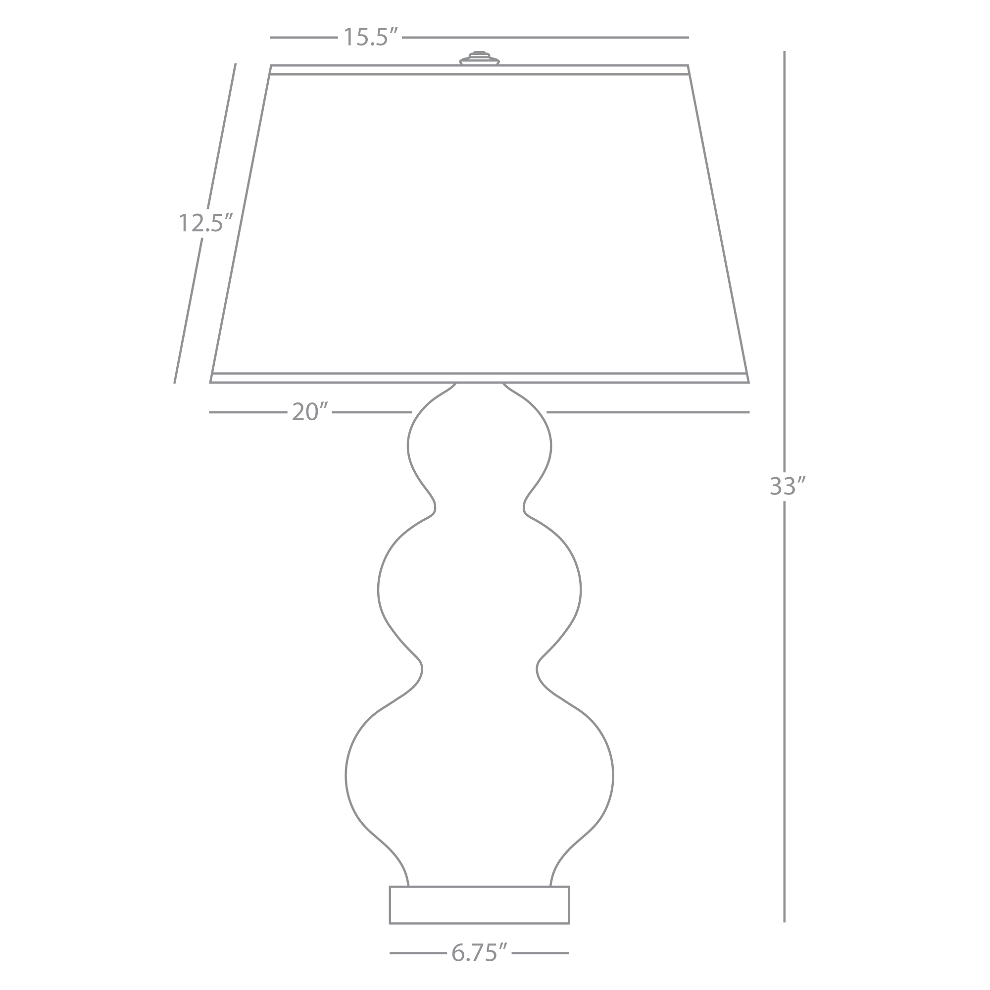 Our Triple Gourd collection features a simple but gracefully curving silhouette. Available in a wide array of vibrant colors and several different base finishes. - Steel Blue Glazed Ceramic With Lucite Base Triple Gourd Table Lamp With Pearl Dupioni Fabric Shade