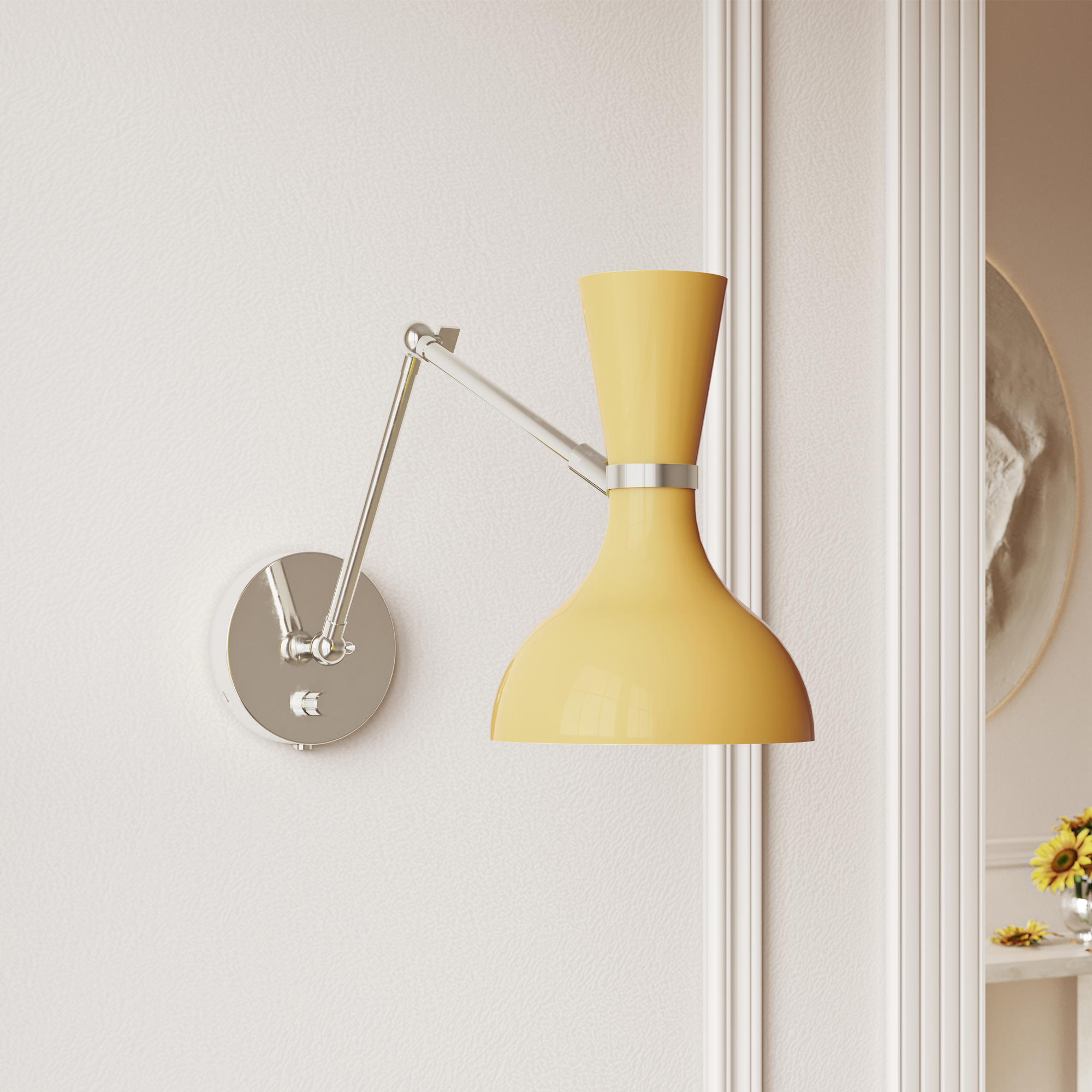 Polished Nickel Adjustable Wall Sconce With Sunset Painted Shade