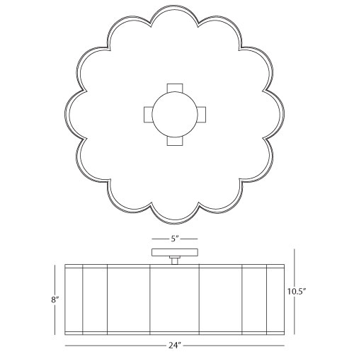 Blackened Antique Nickel Finish Axis Flushmount With Scalloped Ascot White Fabric Shade with Black Contrasting Trim - Axis features a scalloped design that diffuses the light in a most inviting way and also adds an elegant touch that is subtle and charming.