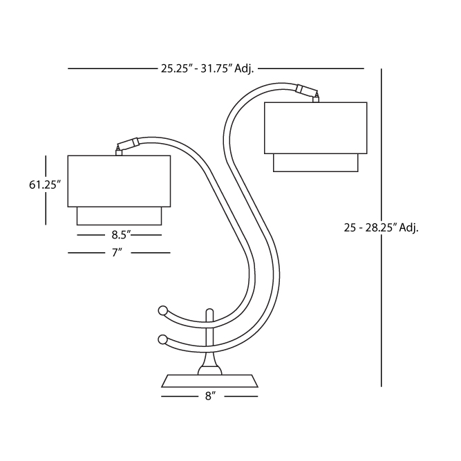 Ideal for an office desk or reading area, the Charlee table lamp features stylish curves and a double armed design. Charlee's tiered fabric shades adjust so you can direct the light to suit your needs.
