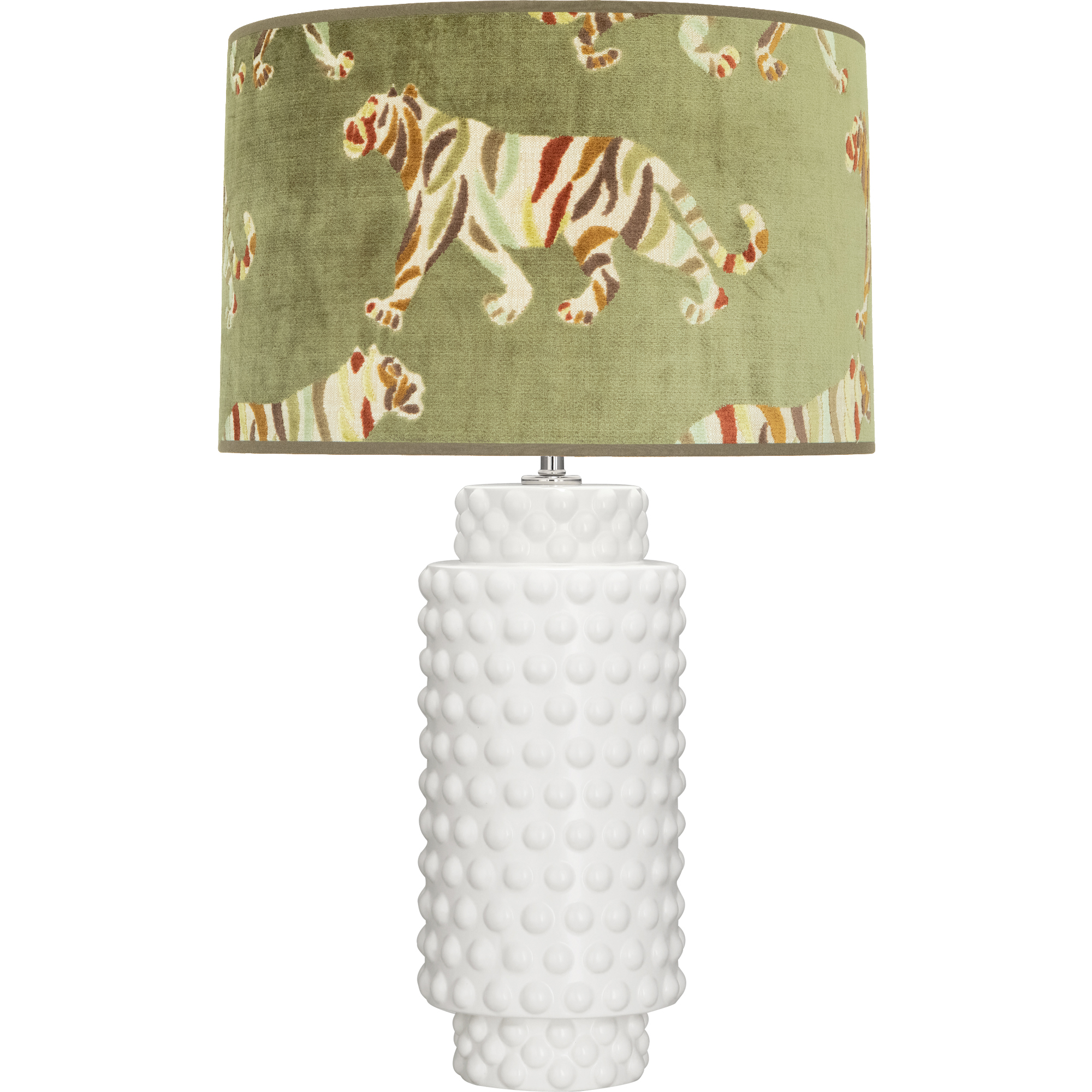 Lily Glazed Textured Ceramic Dolly Table Lamp With Fondine Fabric Shade - Our Dolly table lamps are a great choice for adding visual appeal with a raised circle pattern adorning the ceramic body. You can’t go wrong lighting your space with this modern twist on a classic shape.