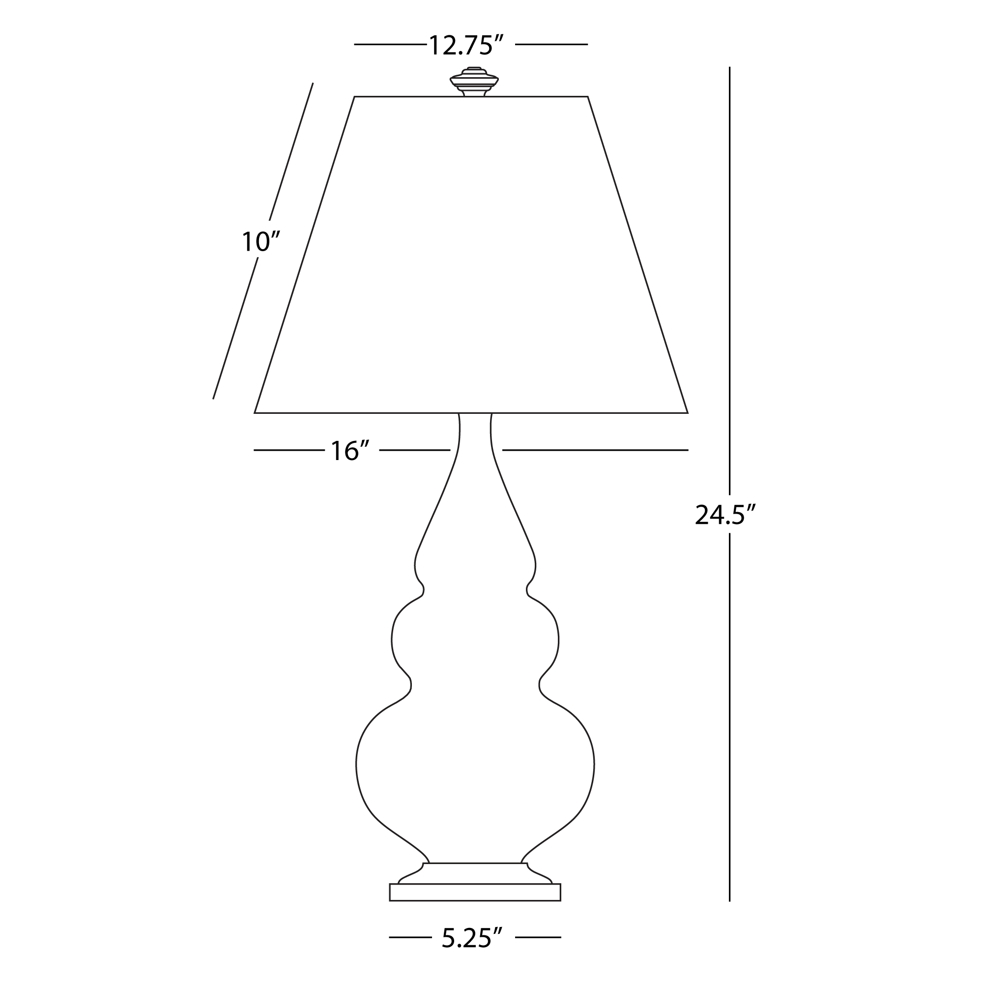 Our Triple Gourd collection features a simple but gracefully curving silhouette. Available in a wide array of vibrant colors and several different base finishes. - Midnight Blue Glazed Ceramic With Antique Brass Finished Accents Small Triple Gourd Accent Lamp With Pearl Dupioni Fabric Shade