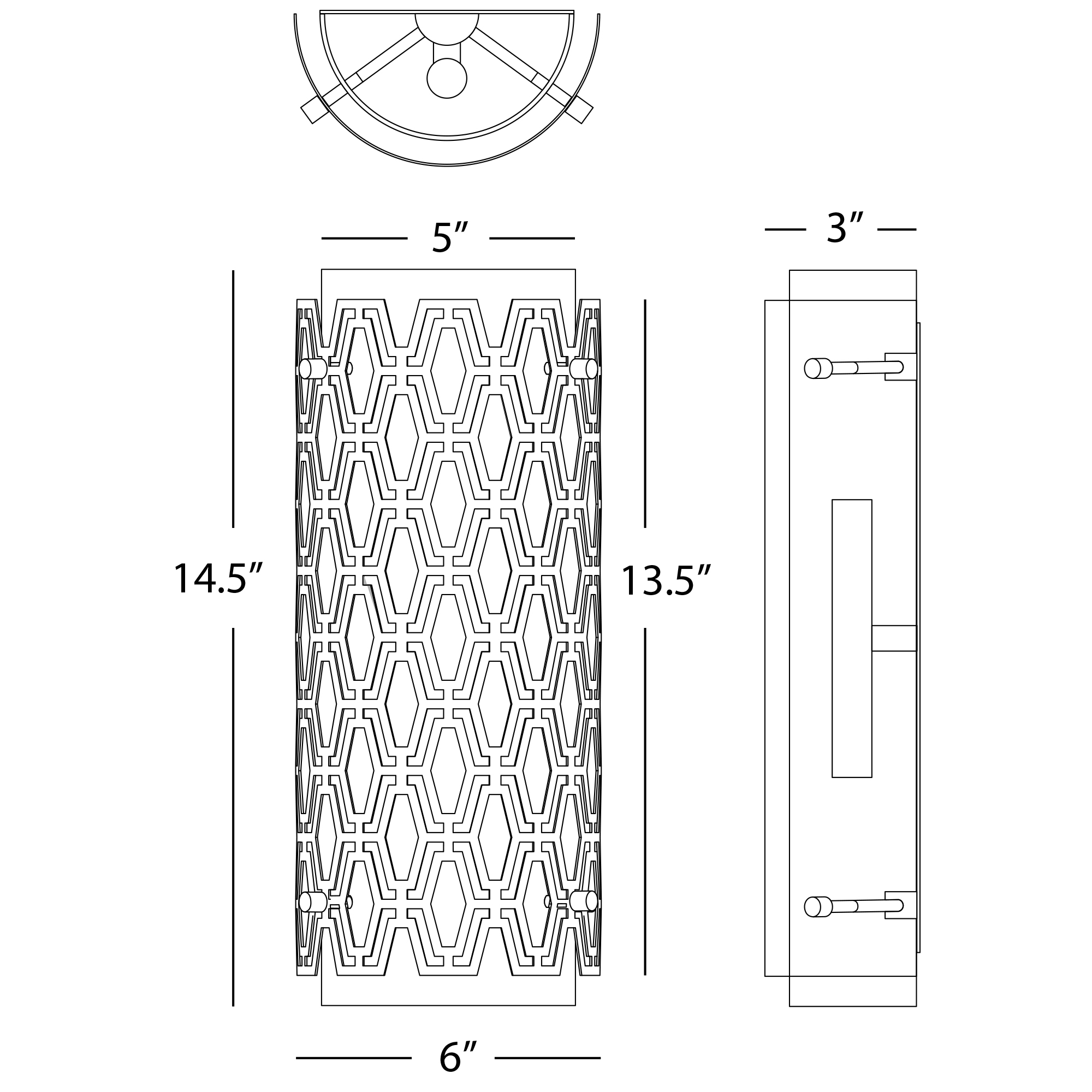 The Marcel Half-Round Wall Sconce's elongated frosted-cased white glass shade is framed by a mid-century modern geometric metal frame finished in Polished Nickel. It's the perfect touch of timeless design to bring warm ambient light to any room.