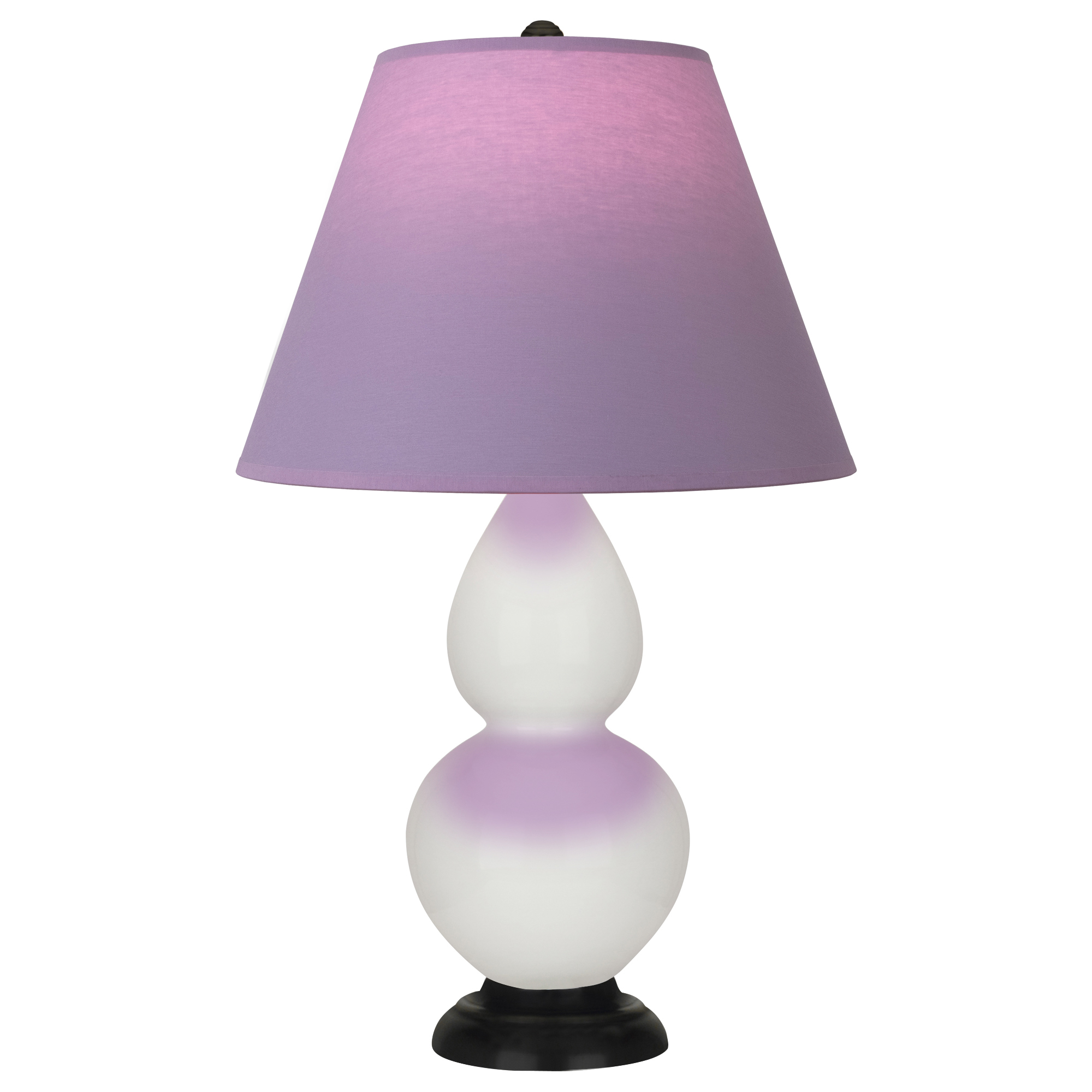 Lily Glazed Ceramic With Deep Patina Bronze Finished Accents Small Double Gourd Accent Lamp With Lavender Fabric Shade with Plum Lining - Our Double Gourd collection features a simple but gracefully curving silhouette. Available in a wide array of vibrant colors and several different base finishes.