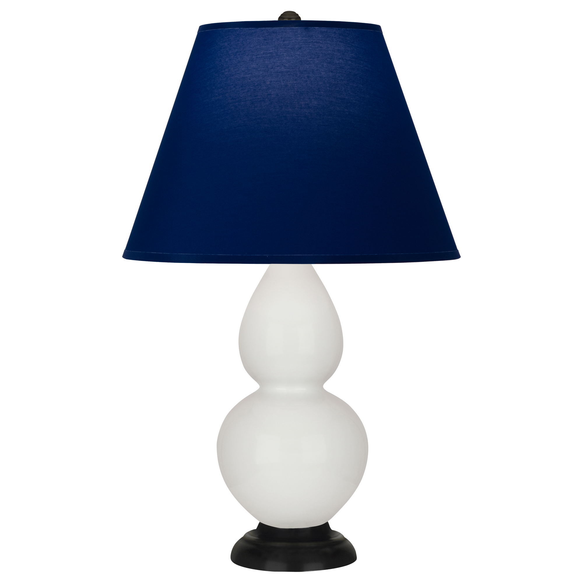 Lily Glazed Ceramic With Deep Patina Bronze Finished Accents Small Double Gourd Accent Lamp With Navy Fabric Shade with Gray Lining - Our Double Gourd collection features a simple but gracefully curving silhouette. Available in a wide array of vibrant colors and several different base finishes.