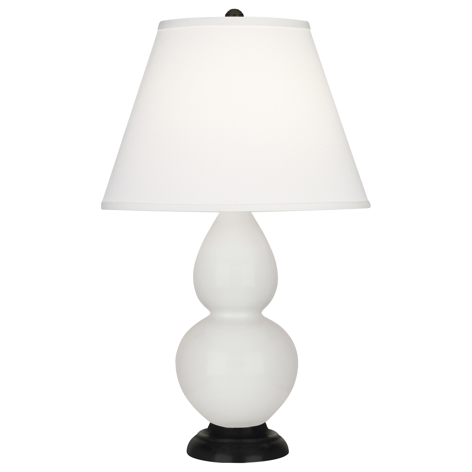 Lily Glazed Ceramic With Deep Patina Bronze Finished Accents Small Double Gourd Accent Lamp With Pearl Dupioni Fabric Shade - Our Double Gourd collection features a simple but gracefully curving silhouette. Available in a wide array of vibrant colors and several different base finishes.