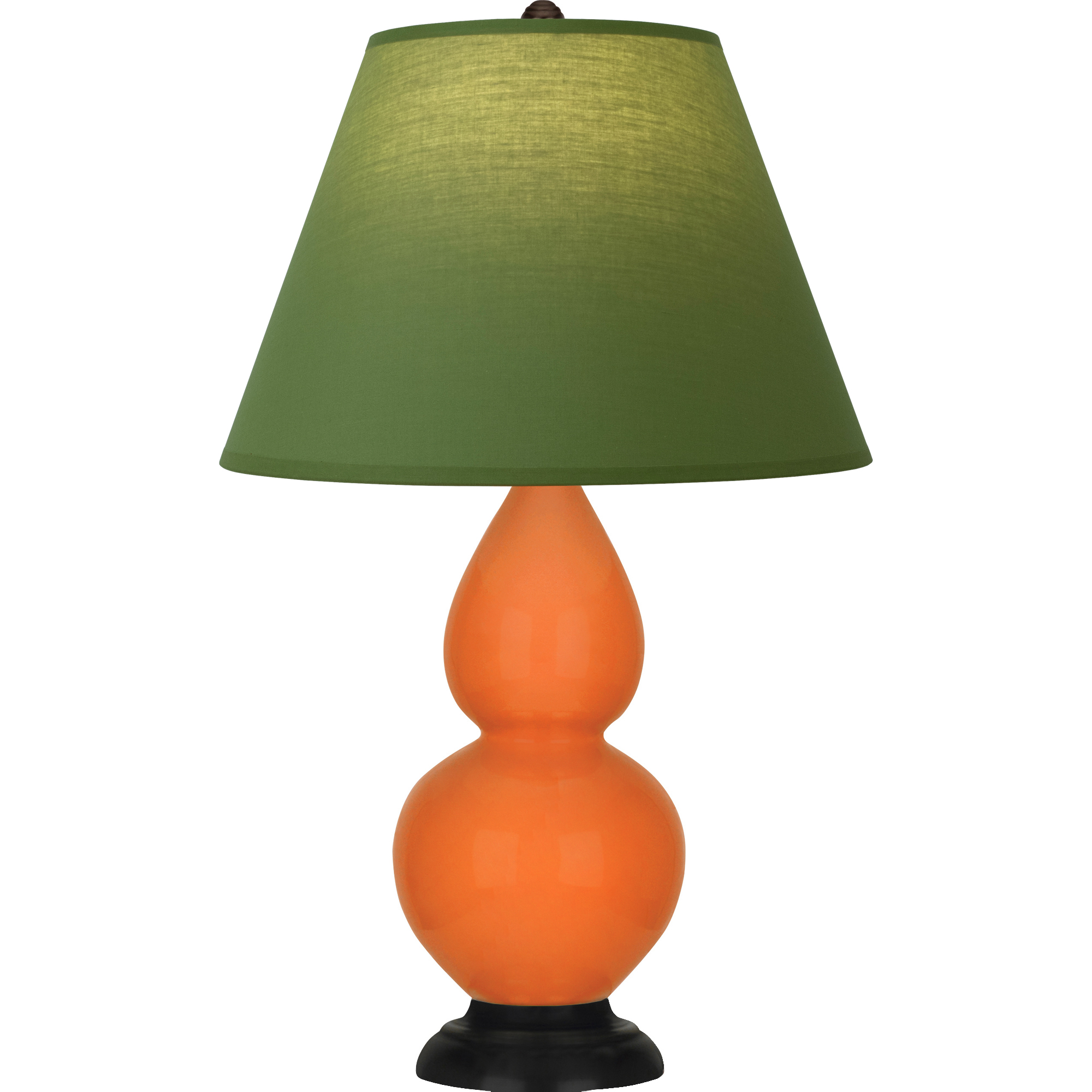 Pumpkin Glazed Ceramic With Deep Patina Bronze Finished Accents Small Double Gourd Accent Lamp With Tea Green Fabric Shade with Taupe Lining - Our Double Gourd collection features a simple but gracefully curving silhouette. Available in a wide array of vibrant colors and several different base finishes.