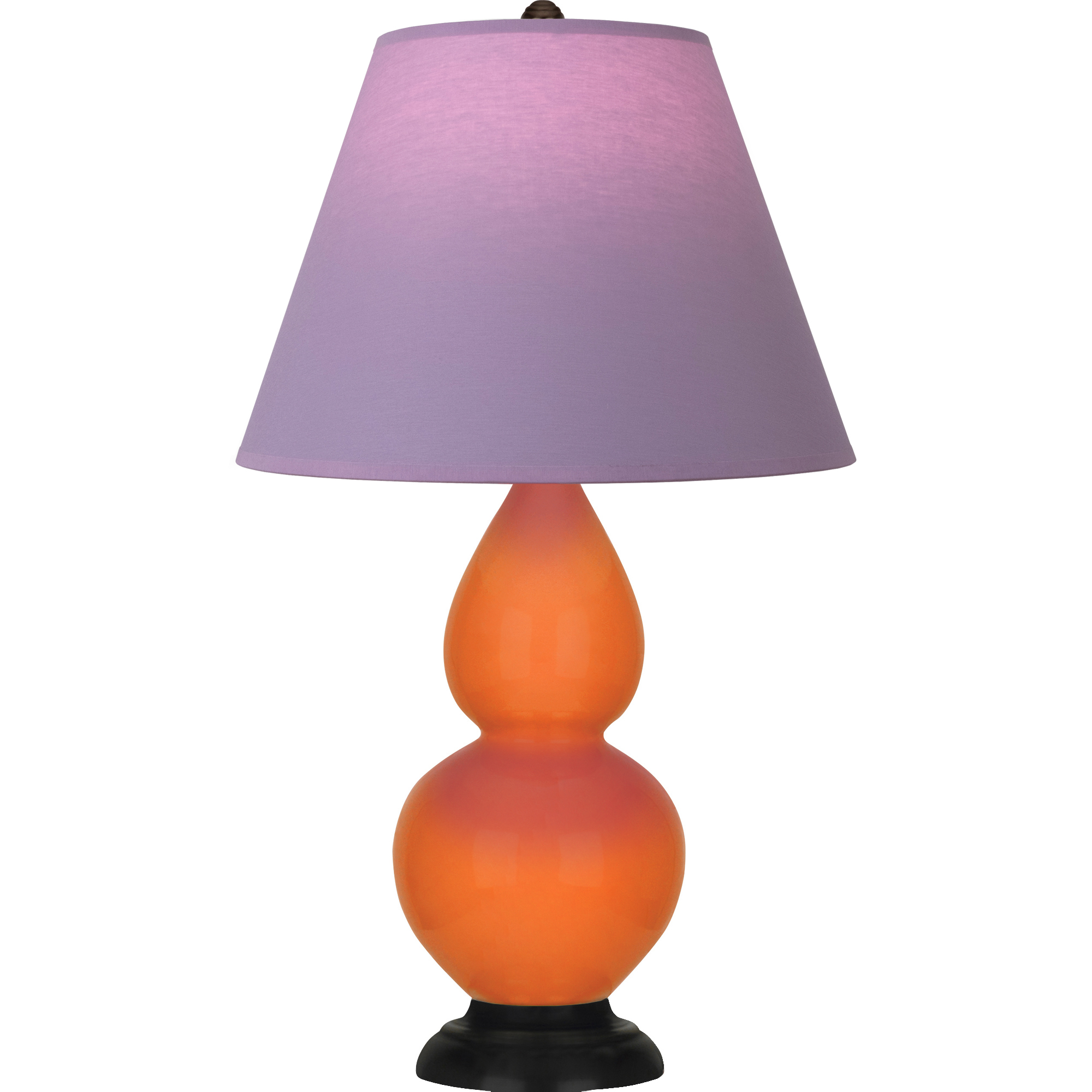 Pumpkin Glazed Ceramic With Deep Patina Bronze Finished Accents Small Double Gourd Accent Lamp With Lavender Fabric Shade with Plum Lining - Our Double Gourd collection features a simple but gracefully curving silhouette. Available in a wide array of vibrant colors and several different base finishes.