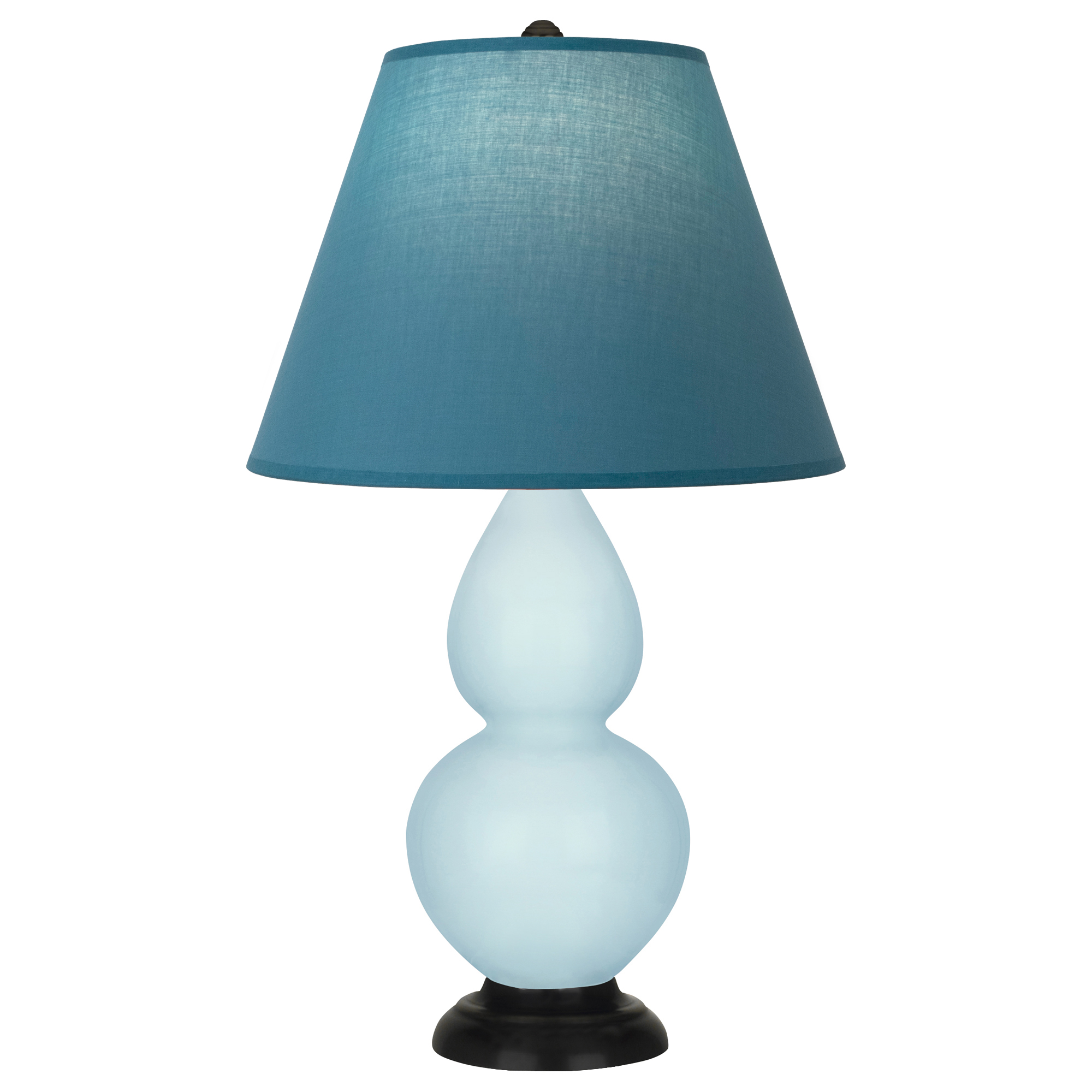 Baby Blue Glazed Ceramic With Deep Patina Bronze Finished Accents Double Gourd Table Lamp With Bright Blue Fabric Shade with Gray Lining - Our Double Gourd collection features a simple but gracefully curving silhouette. Available in a wide array of vibrant colors and several different base finishes.