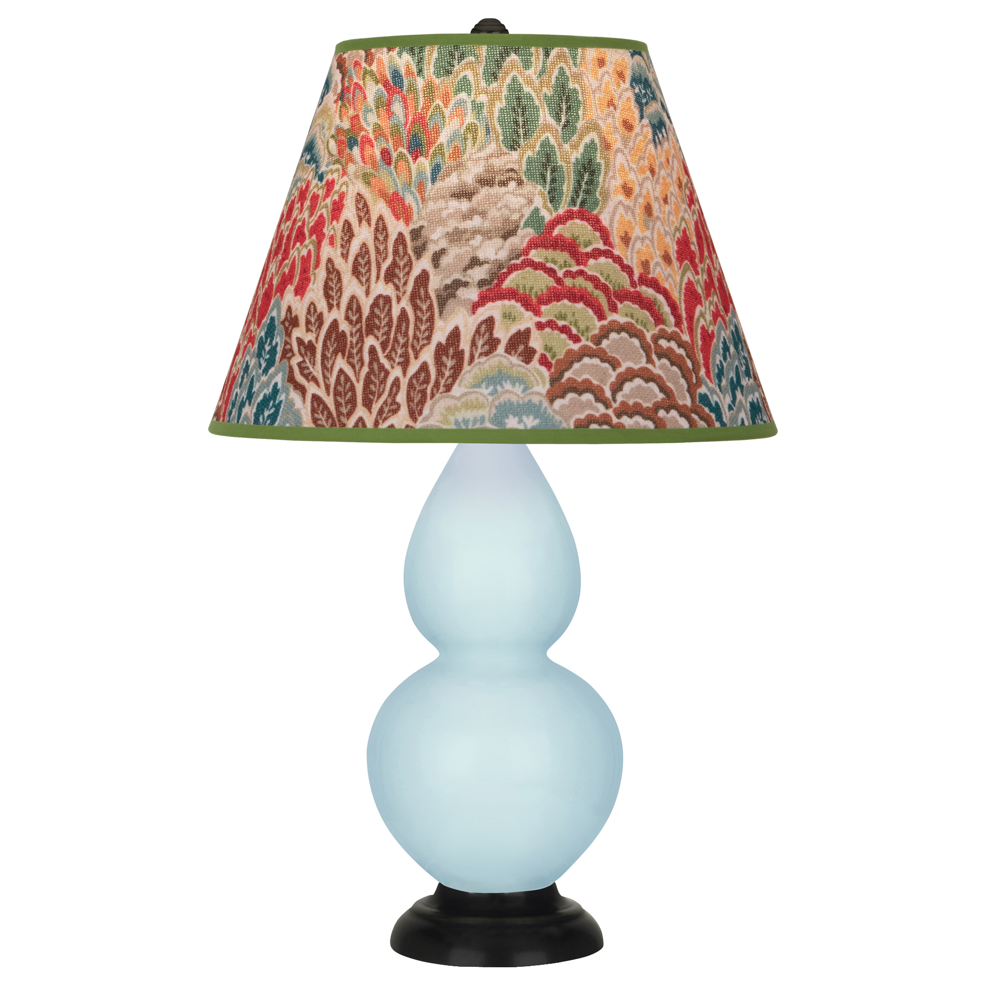 Baby Blue Glazed Ceramic With Deep Patina Bronze Finished Accents Small Double Gourd Accent Lamp With Fall Floral Fabric Shade - Our Double Gourd collection features a simple but gracefully curving silhouette. Available in a wide array of vibrant colors and several different base finishes.