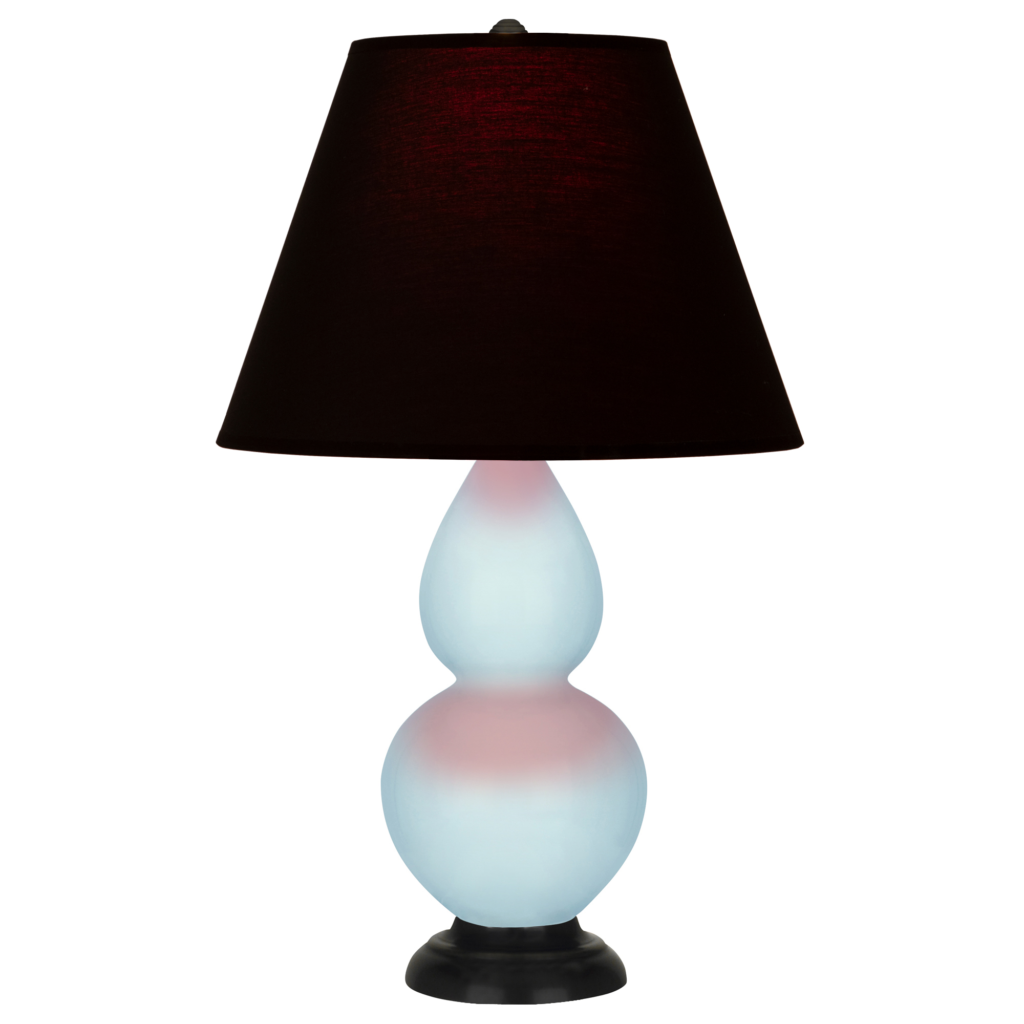 Baby Blue Glazed Ceramic With Deep Patina Bronze Finished Accents Small Double Gourd Accent Lamp With Ink Fabric Shade with Rose Red Lining - Our Double Gourd collection features a simple but gracefully curving silhouette. Available in a wide array of vibrant colors and several different base finishes.