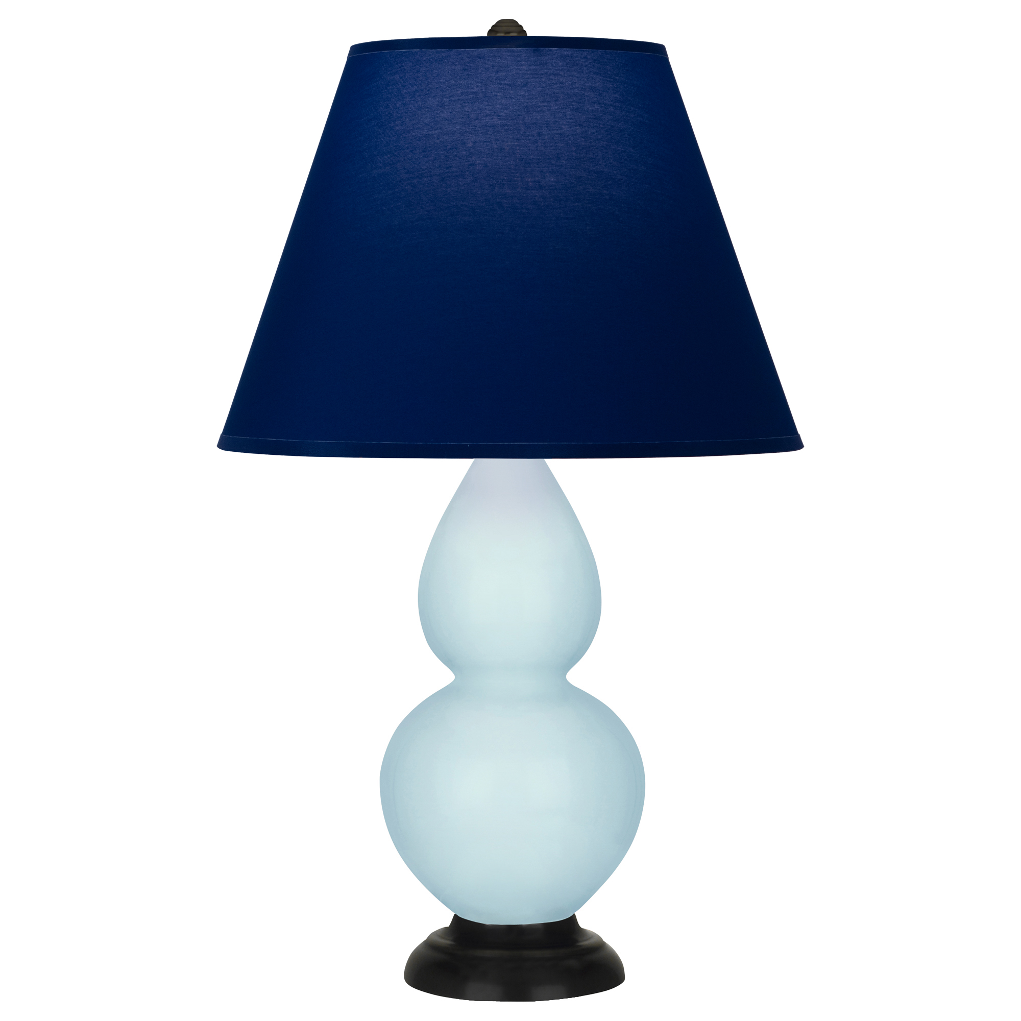 Baby Blue Glazed Ceramic With Deep Patina Bronze Finished Accents Small Double Gourd Accent Lamp With Navy Fabric Shade with Gray Lining - Our Double Gourd collection features a simple but gracefully curving silhouette. Available in a wide array of vibrant colors and several different base finishes.