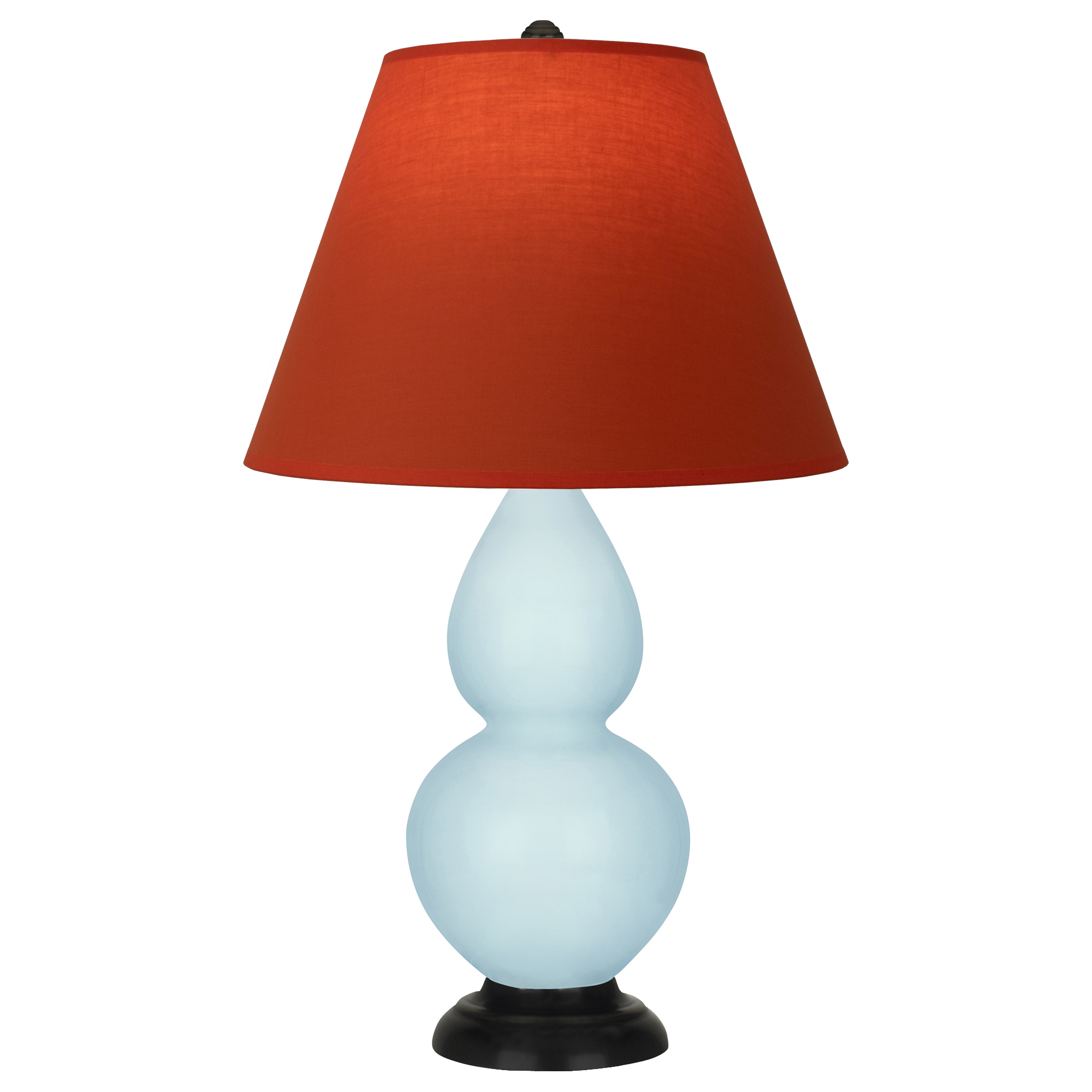 Baby Blue Glazed Ceramic With Deep Patina Bronze Finished Accents With Tangerine w/ Taupe Lining Fabric Shade - Our Double Gourd collection features a simple but gracefully curving silhouette. Available in a wide array of vibrant colors and several different base finishes.