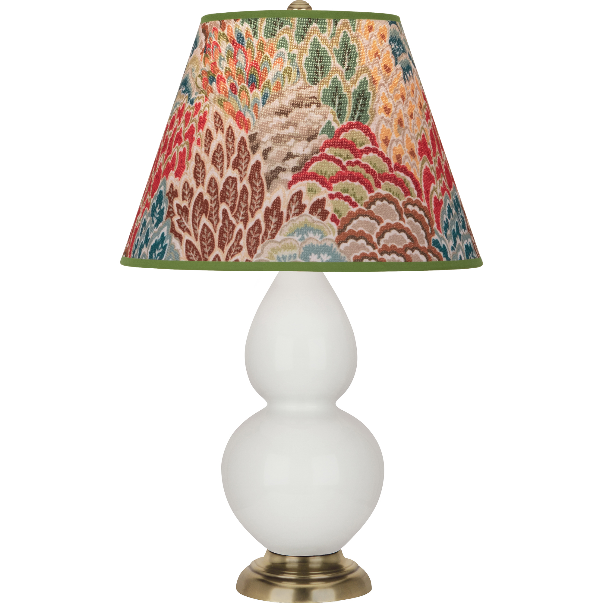 Lily Glazed Ceramic With Antique Natural Brass Finished Accents Small Double Gourd Accent Lamp With Fall Floral Fabric Shade - Our Double Gourd collection features a simple but gracefully curving silhouette. Available in a wide array of vibrant colors and several different base finishes.