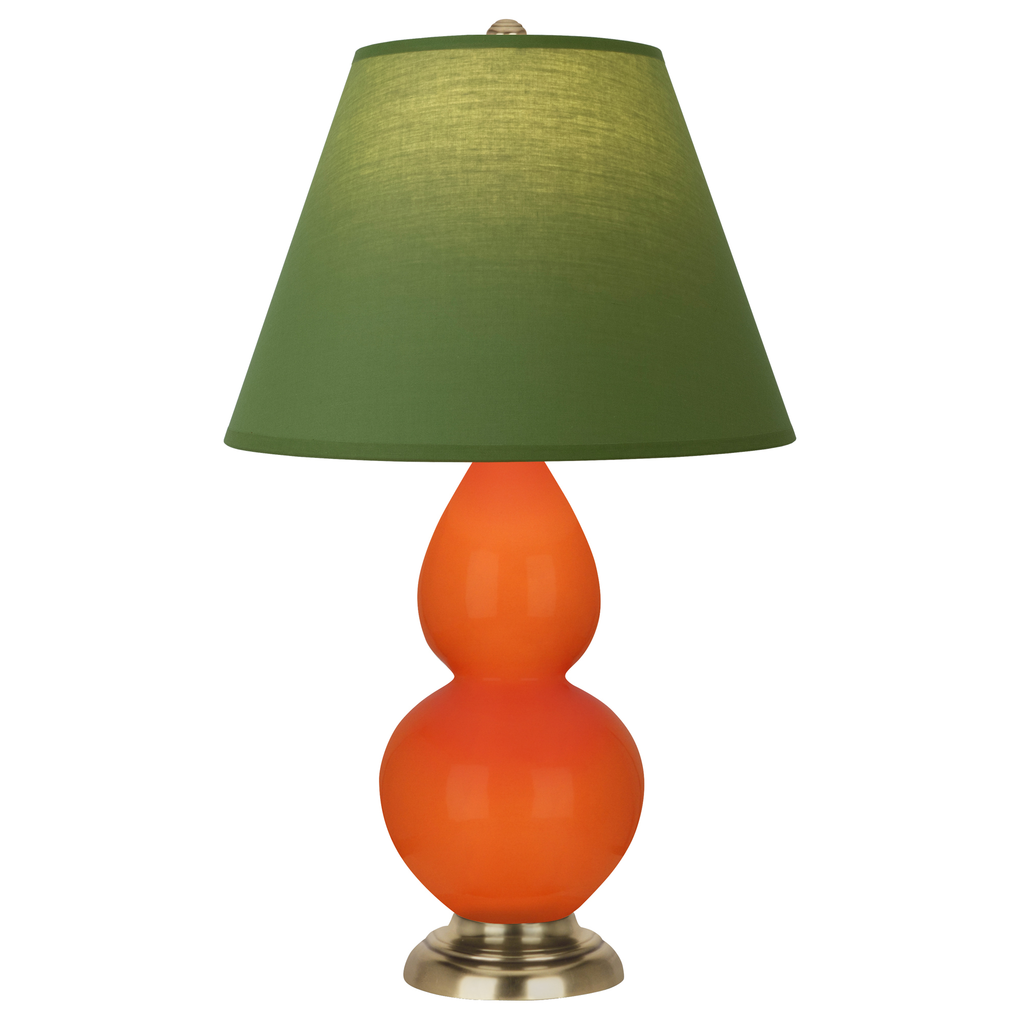 Pumpkin Glazed Ceramic With Antique Natural Brass Finished Accents Double Gourd Table Lamp With Tea Green Fabric Shade with Taupe Lining - Our Double Gourd collection features a simple but gracefully curving silhouette. Available in a wide array of vibrant colors and several different base finishes.