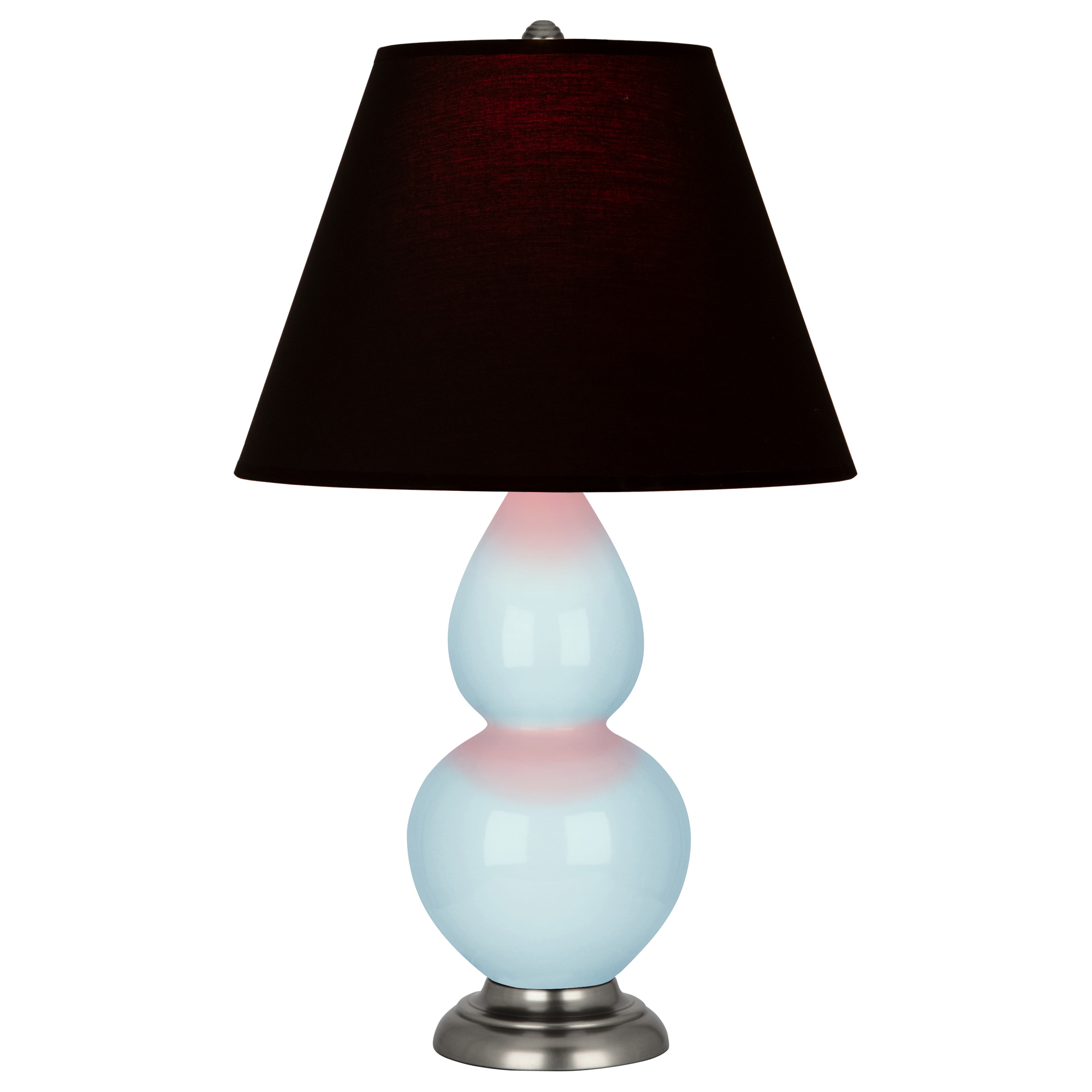 Baby Blue Glazed Ceramic With Antique Silver Finished Accents Small Double Gourd Accent Lamp With Ink Fabric Shade with Rose Red Lining - Our Double Gourd collection features a simple but gracefully curving silhouette. Available in a wide array of vibrant colors and several different base finishes.