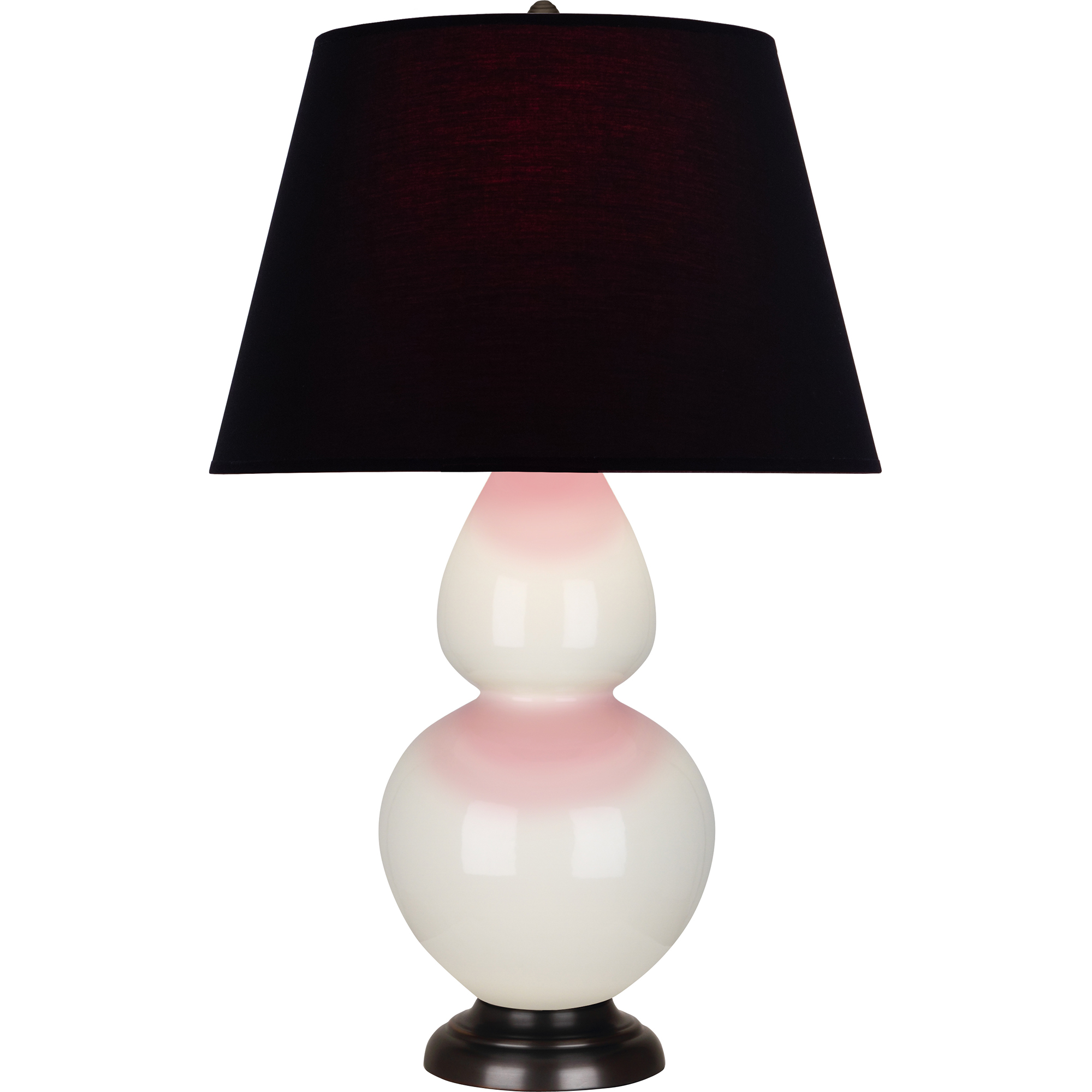 Bone Glazed Ceramic Double Gourd Table Lamp With Ink Fabric Shade with Rose Red Lining - Our Double Gourd collection features a simple but gracefully curving silhouette. Available in a wide array of vibrant colors and several different base finishes.