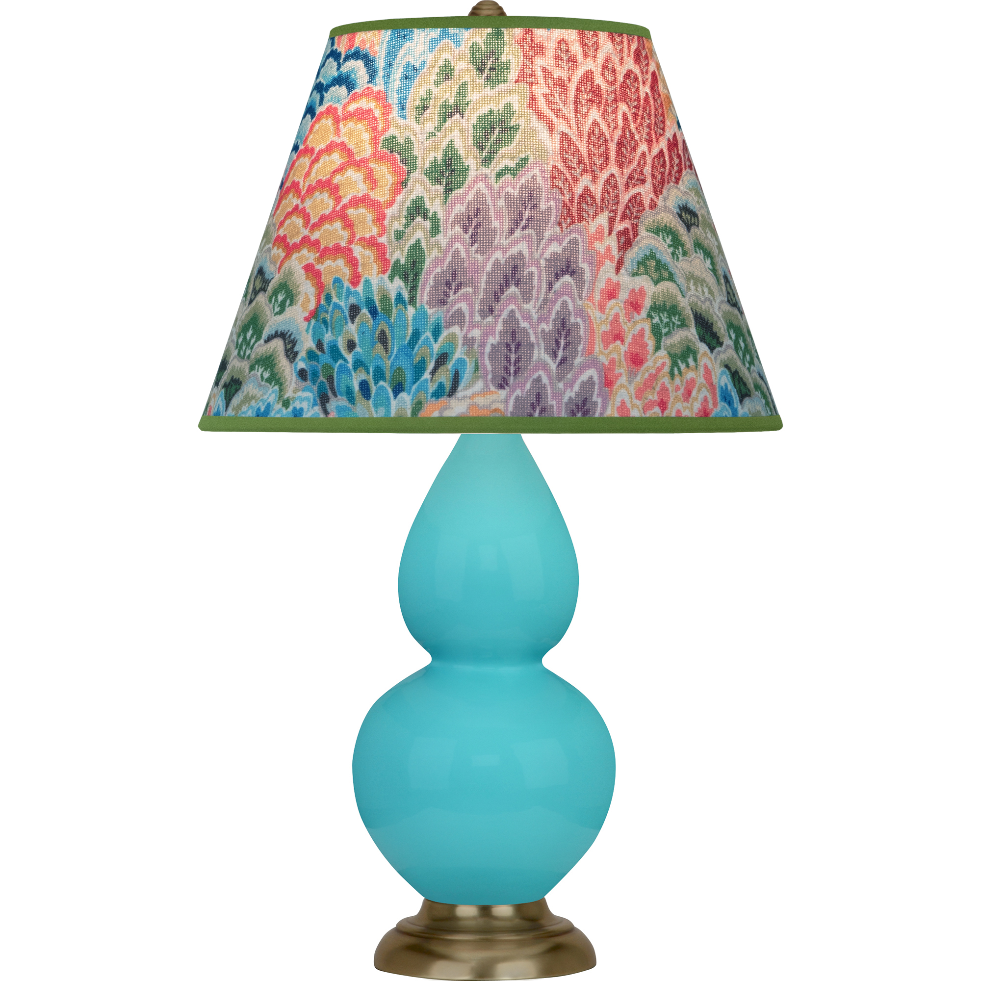 Egg Blue Glazed Ceramic Small Double Gourd Accent Lamp With Spring Floral Fabric Shade - Our Double Gourd collection features a simple but gracefully curving silhouette. Available in a wide array of vibrant colors and several different base finishes.