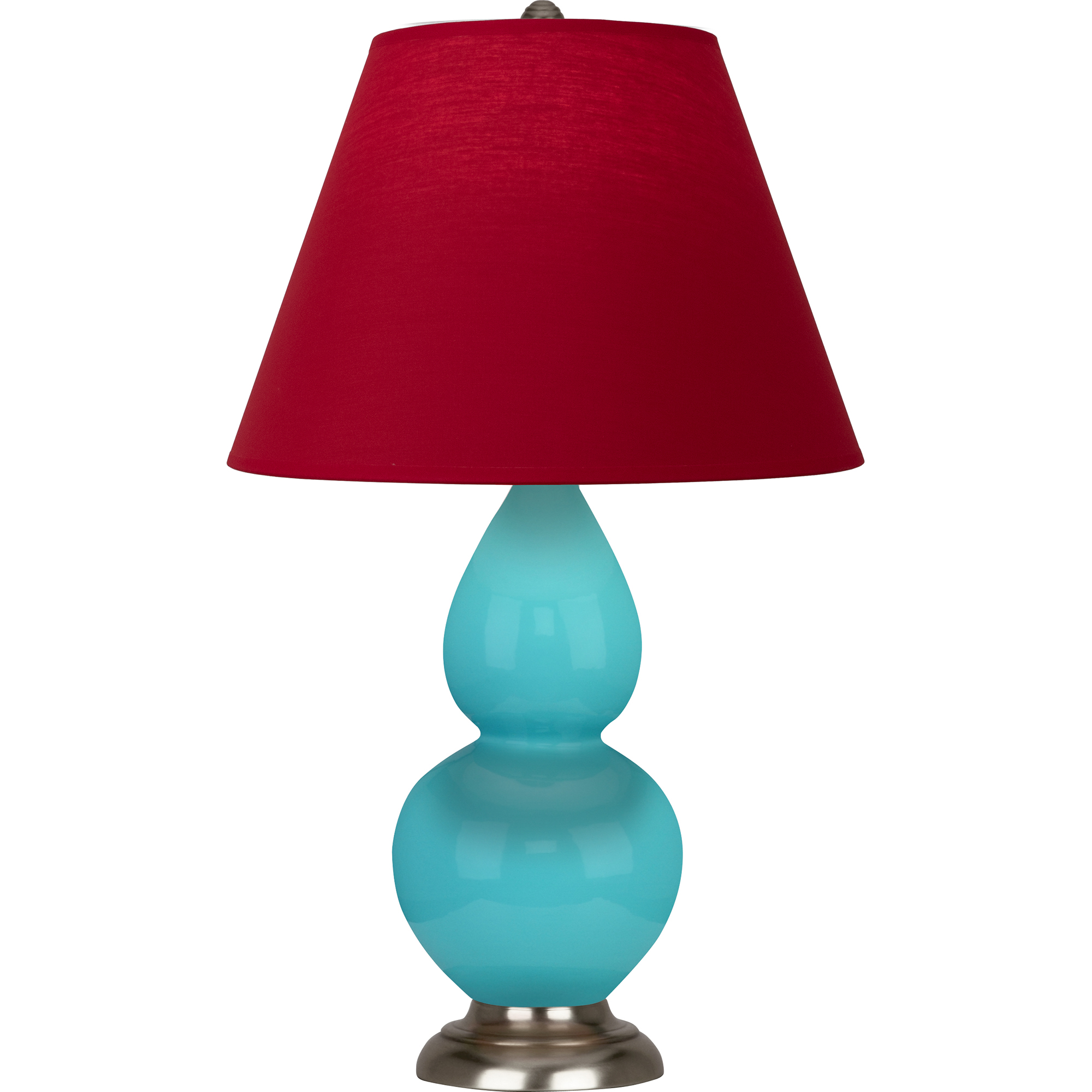 Egg Blue Glazed Ceramic With Antique Silver Finished Accents With Rose Red w/ Ink Lining Fabric Shade - Our Double Gourd collection features a simple but gracefully curving silhouette. Available in a wide array of vibrant colors and several different base finishes.
