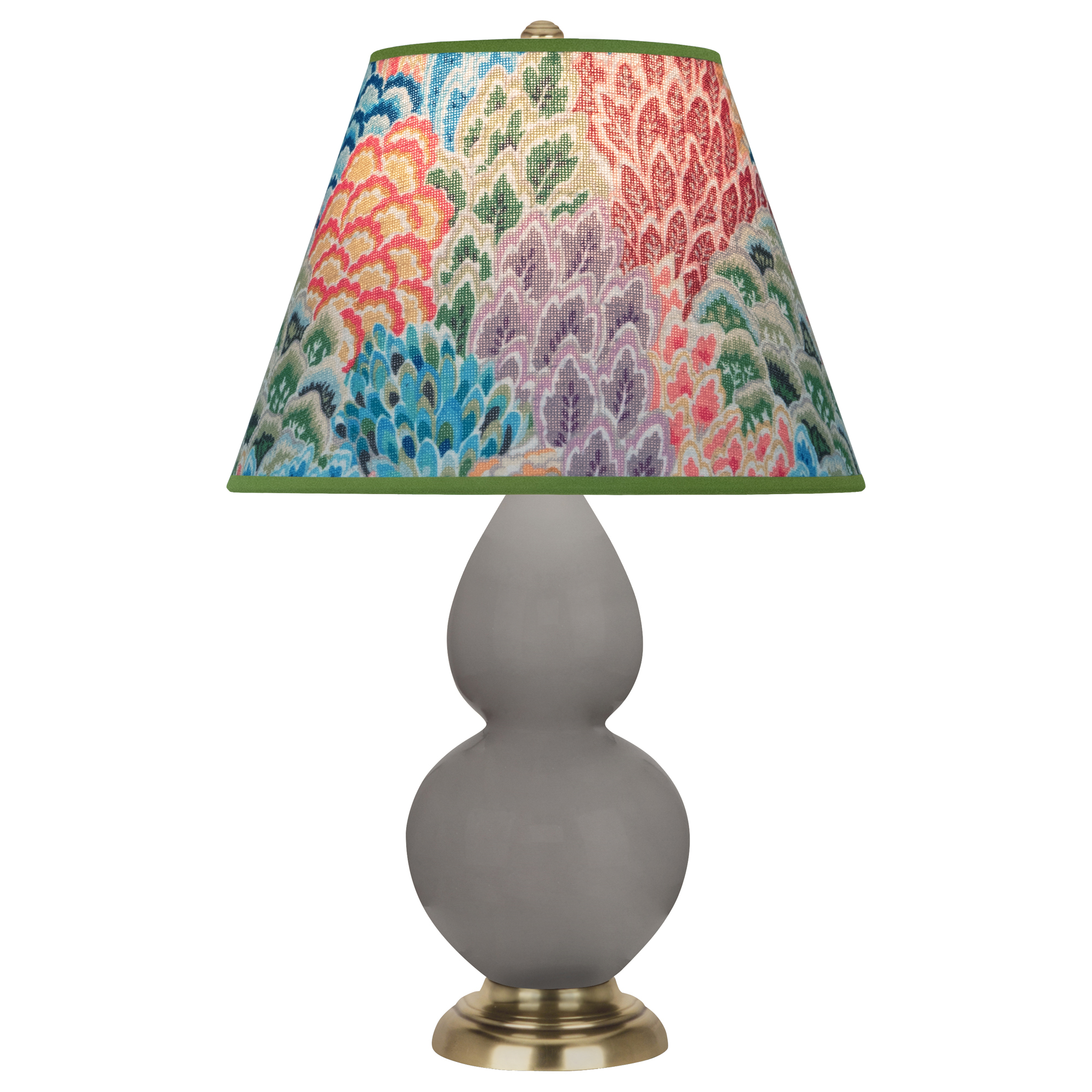Smokey Taupe Glazed Ceramic Small Double Gourd Accent Lamp With Spring Floral Fabric Shade - Our Double Gourd collection features a simple but gracefully curving silhouette. Available in a wide array of vibrant colors and several different base finishes.