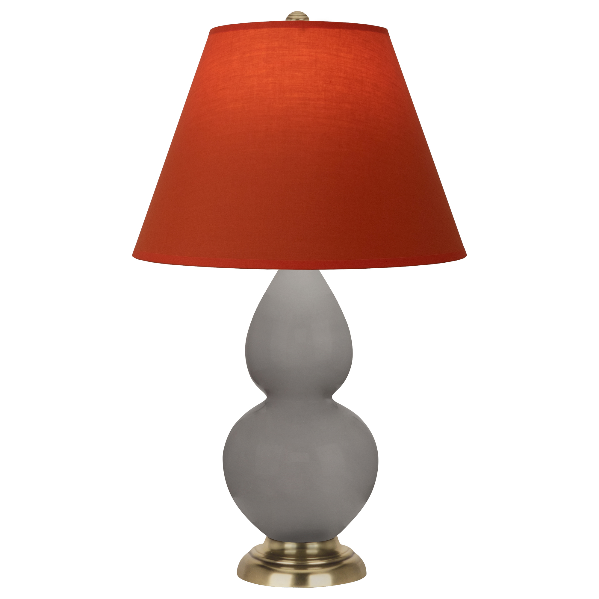 Smokey Taupe Glazed Ceramic With Antique Natural Brass Finished Accents With Tangerine w/ Taupe Lining Fabric Shade - Our Double Gourd collection features a simple but gracefully curving silhouette. Available in a wide array of vibrant colors and several different base finishes.