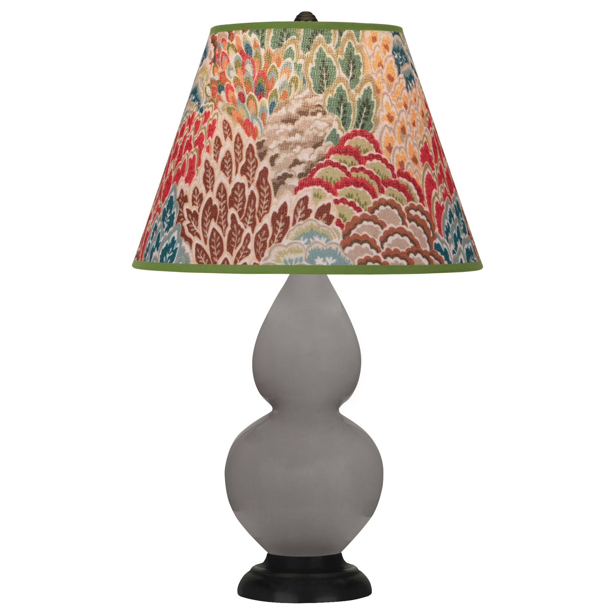 Smokey Taupe Glazed Ceramic Small Double Gourd Accent Lamp With Fall Floral Fabric Shade - Our Double Gourd collection features a simple but gracefully curving silhouette. Available in a wide array of vibrant colors and several different base finishes.