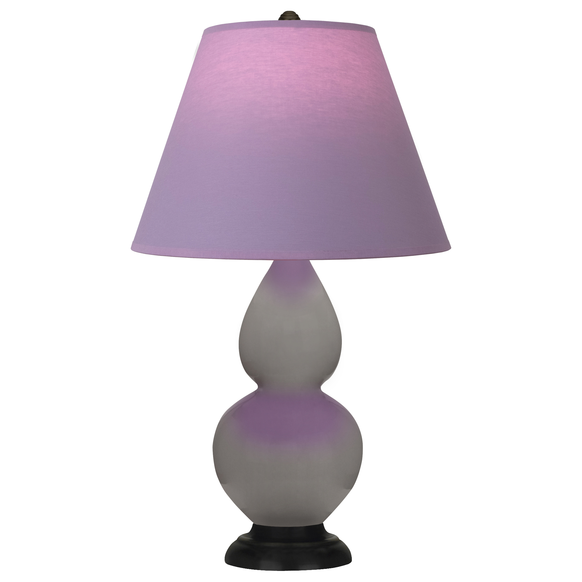 Smokey Taupe Glazed Ceramic With Deep Patina Bronze Finished Accents Small Double Gourd Accent Lamp With Lavender Fabric Shade with Plum Lining - Our Double Gourd collection features a simple but gracefully curving silhouette. Available in a wide array of vibrant colors and several different base finishes.