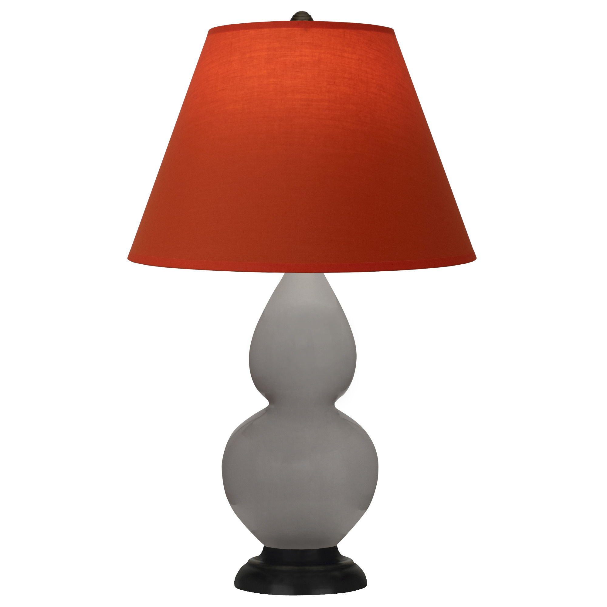 Smokey Taupe Glazed Ceramic With Deep Patina Bronze Finished Accents With Tangerine w/ Taupe Lining Fabric Shade - Our Double Gourd collection features a simple but gracefully curving silhouette. Available in a wide array of vibrant colors and several different base finishes.