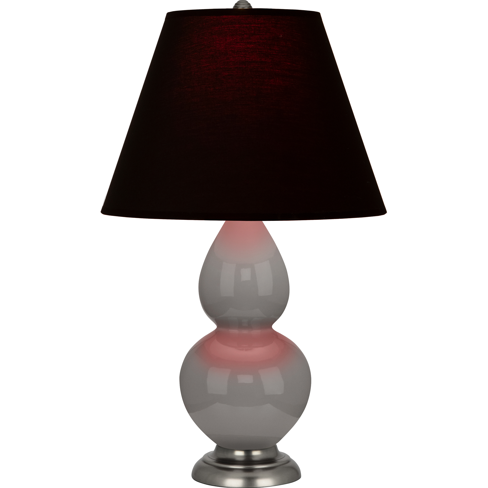 Smokey Taupe Glazed Ceramic With Antique Silver Finished Accents Small Double Gourd Accent Lamp With Ink Fabric Shade with Rose Red Lining - Our Double Gourd collection features a simple but gracefully curving silhouette. Available in a wide array of vibrant colors and several different base finishes.