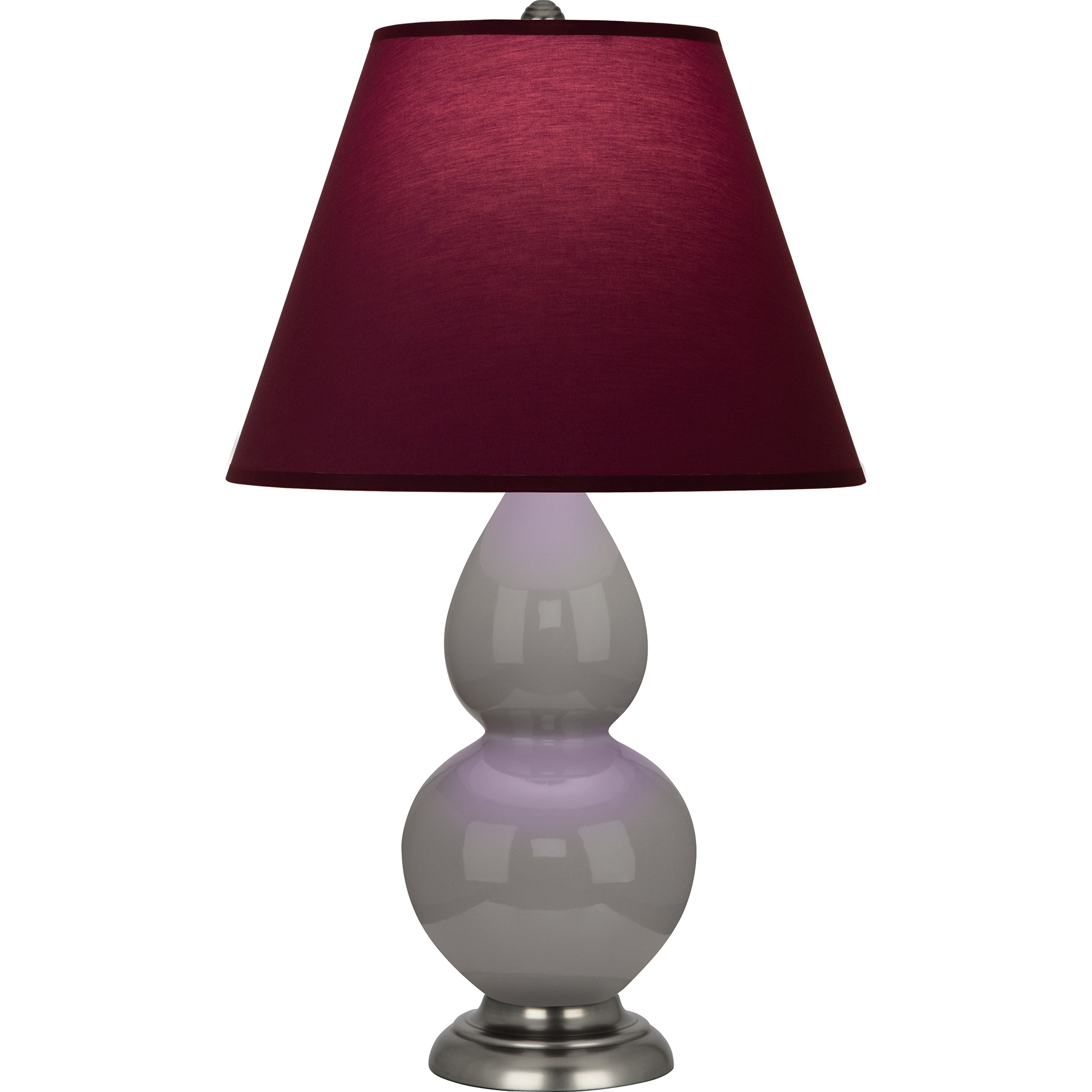 Smokey Taupe Glazed Ceramic With Antique Silver Finished Accents Small Double Gourd Accent Lamp With Plum Fabric Shade with Lavender Lining - Our Double Gourd collection features a simple but gracefully curving silhouette. Available in a wide array of vibrant colors and several different base finishes.