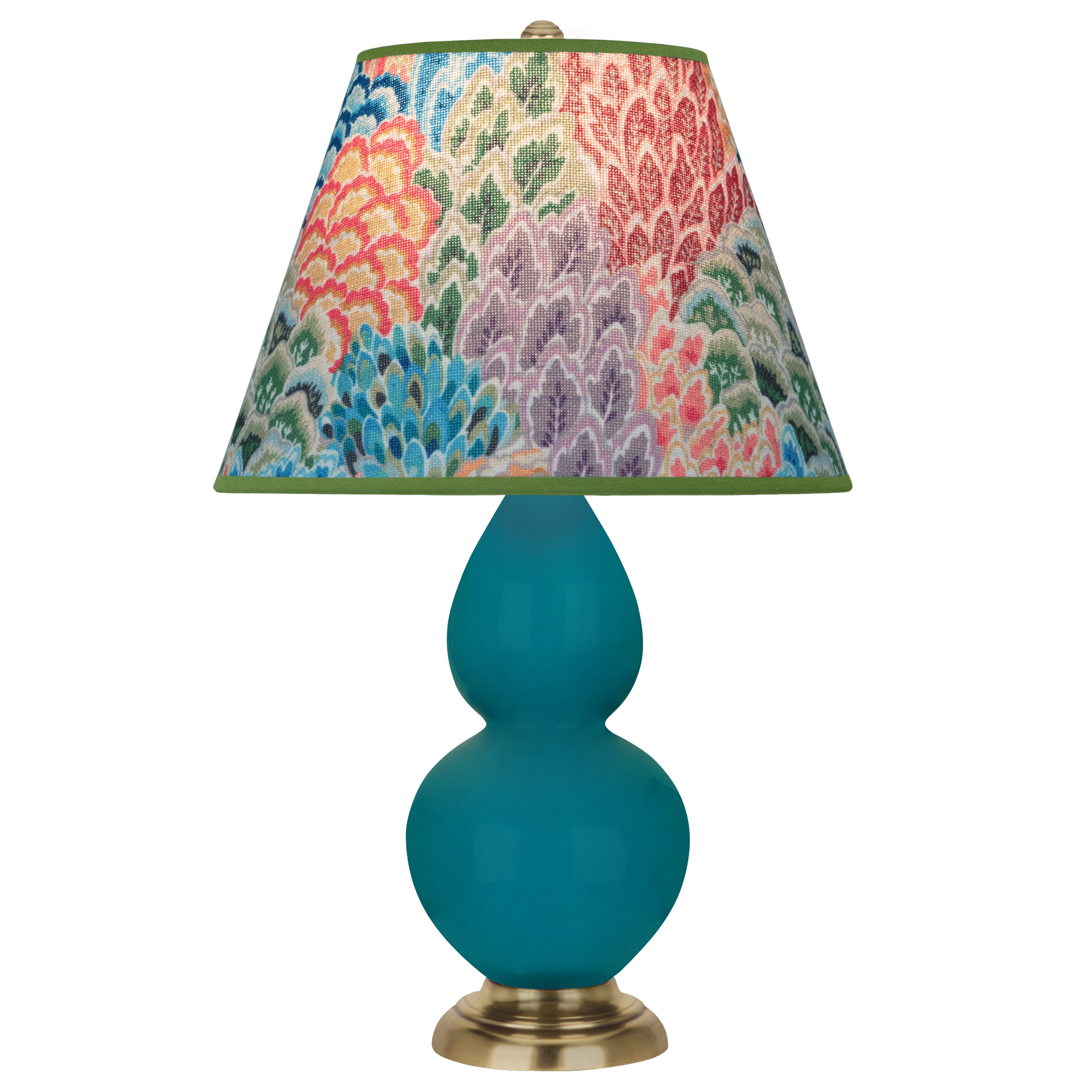 Peacock Glazed Ceramic Small Double Gourd Accent Lamp With Spring Floral Fabric Shade - Our Double Gourd collection features a simple but gracefully curving silhouette. Available in a wide array of vibrant colors and several different base finishes.