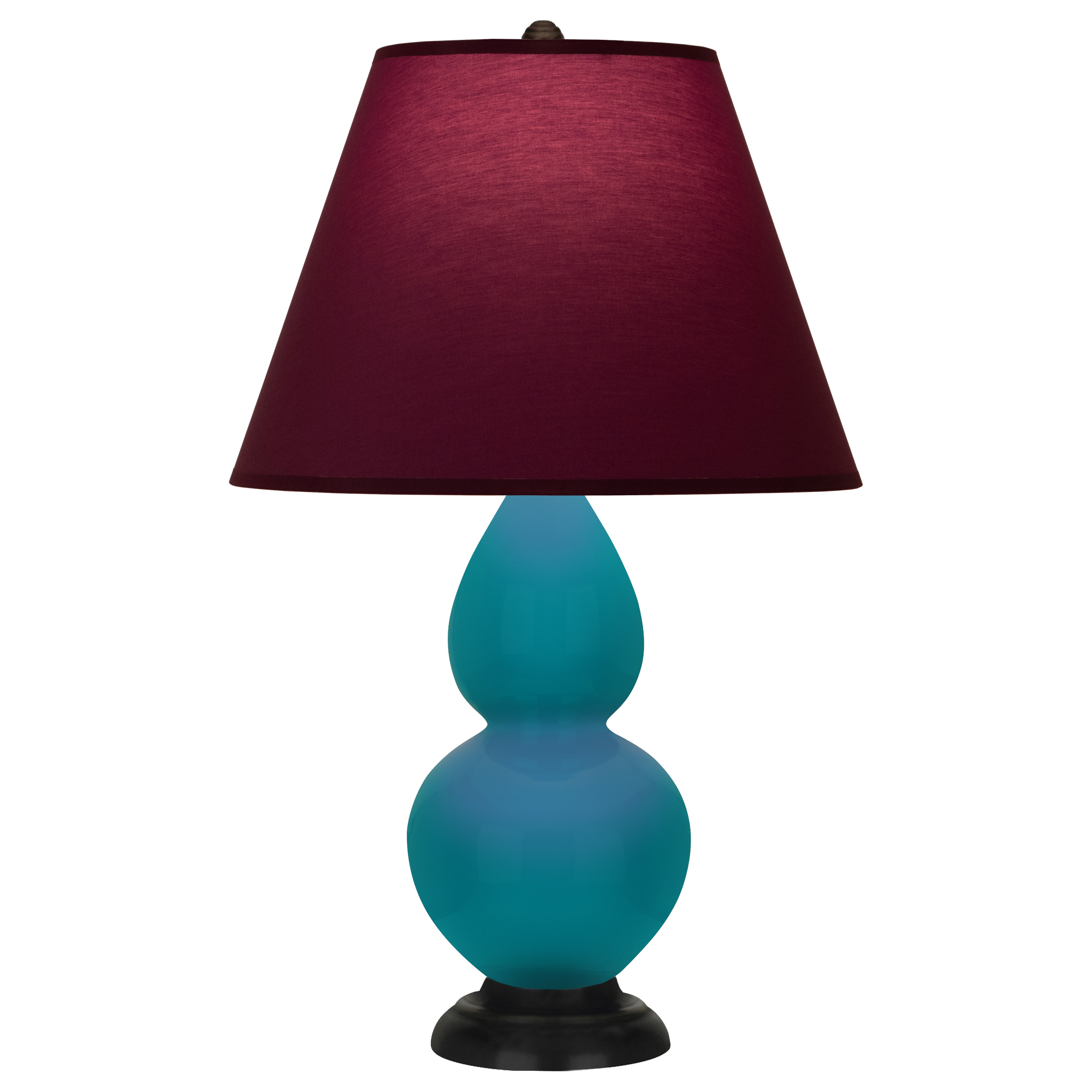 Peacock Glazed Ceramic With Deep Patina Bronze Finished Accents Small Double Gourd Accent Lamp With Plum Fabric Shade with Lavender Lining - Our Double Gourd collection features a simple but gracefully curving silhouette. Available in a wide array of vibrant colors and several different base finishes.