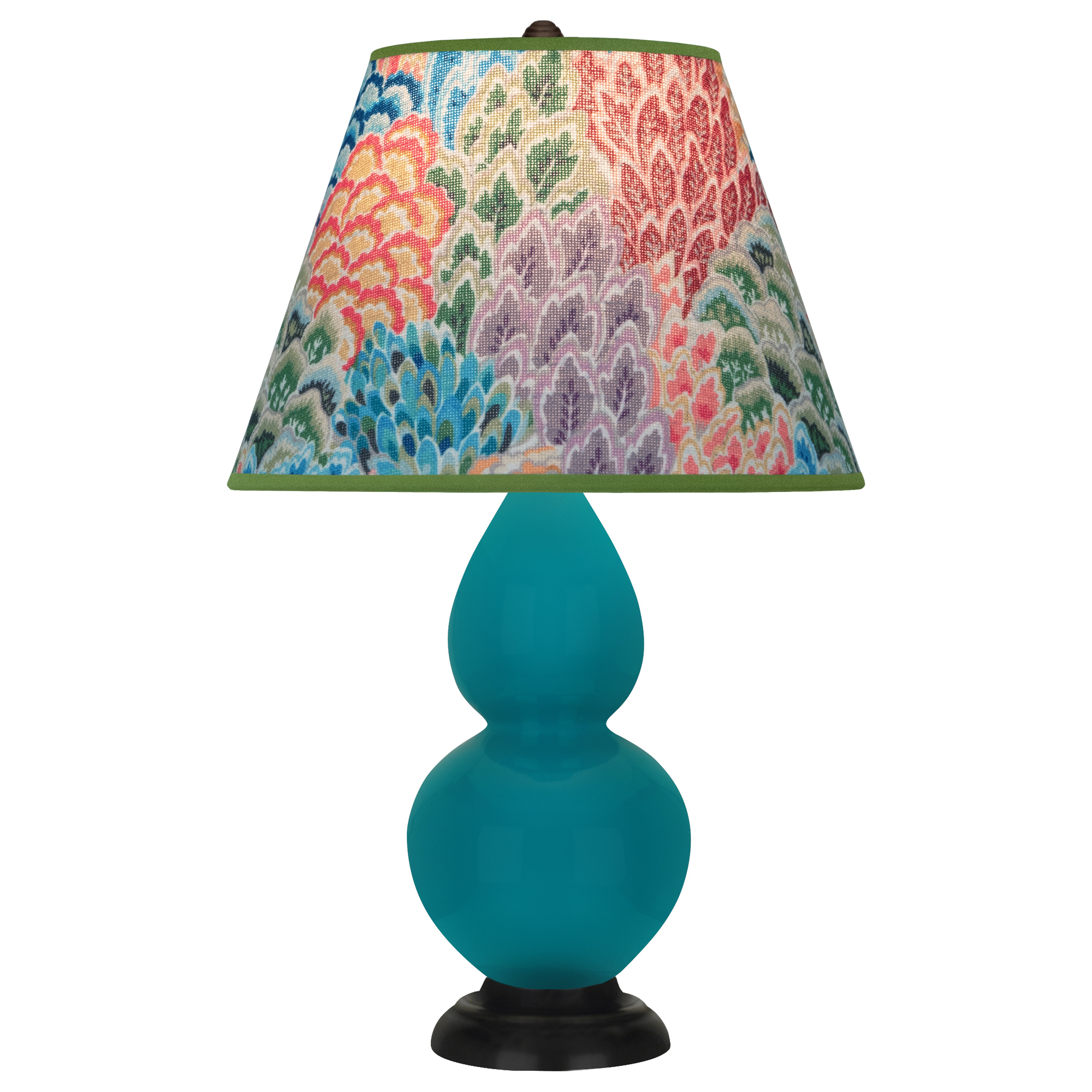 Peacock Glazed Ceramic Small Double Gourd Accent Lamp With Spring Floral Fabric Shade - Our Double Gourd collection features a simple but gracefully curving silhouette. Available in a wide array of vibrant colors and several different base finishes.