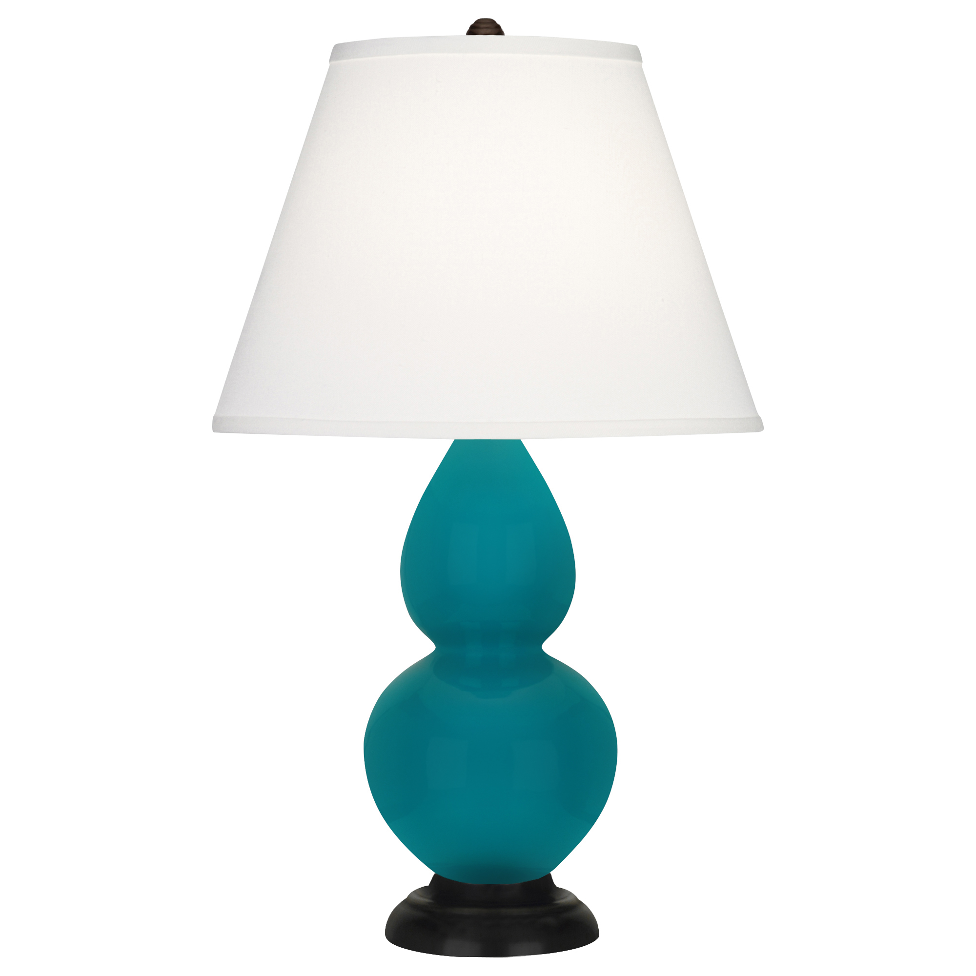 Peacock Glazed Ceramic Small Double Gourd Accent Lamp With Pearl Dupioni Fabric Shade - Our Double Gourd collection features a simple but gracefully curving silhouette. Available in a wide array of vibrant colors and several different base finishes.