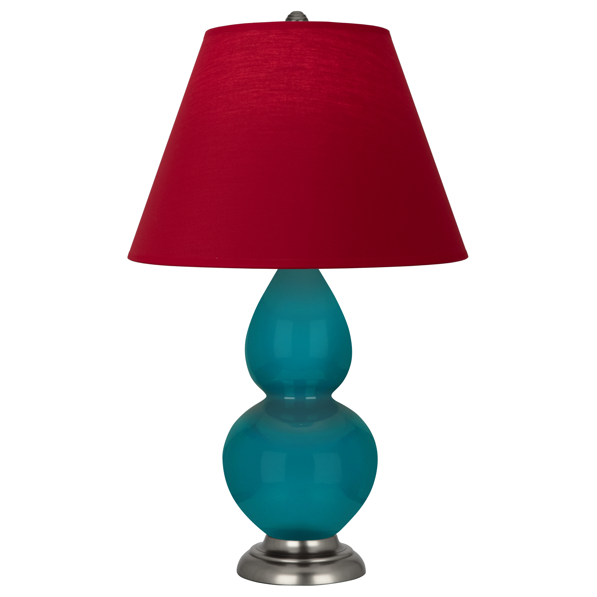 Peacock Glazed Ceramic With Antique Silver Finished Accents With Rose Red w/ Ink Lining Fabric Shade - Our Double Gourd collection features a simple but gracefully curving silhouette. Available in a wide array of vibrant colors and several different base finishes.