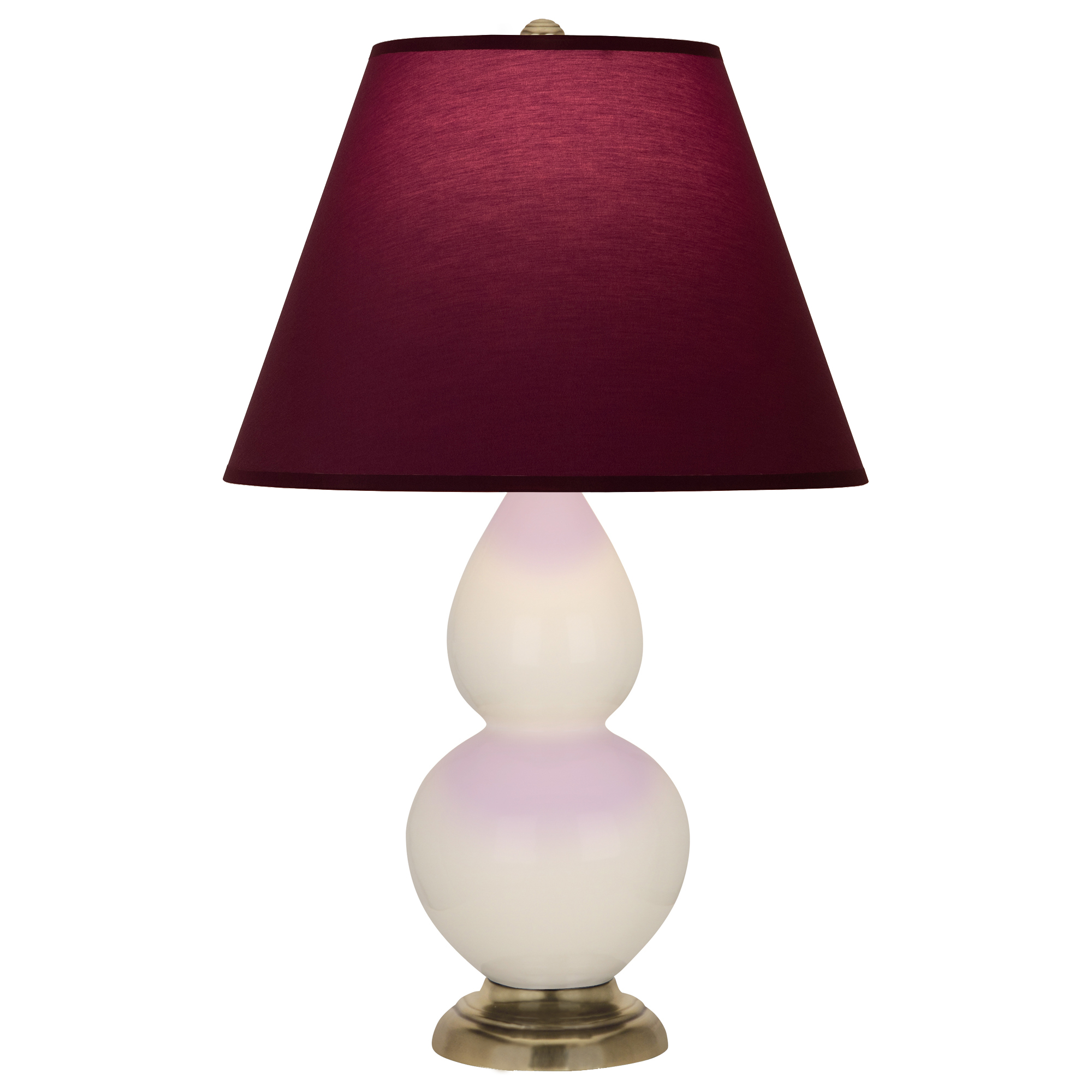 Bone Glazed Ceramic With Antique Brass Finished Accents Small Double Gourd Accent Lamp With Plum Fabric Shade with Lavender Lining - Our Double Gourd collection features a simple but gracefully curving silhouette. Available in a wide array of vibrant colors and several different base finishes.