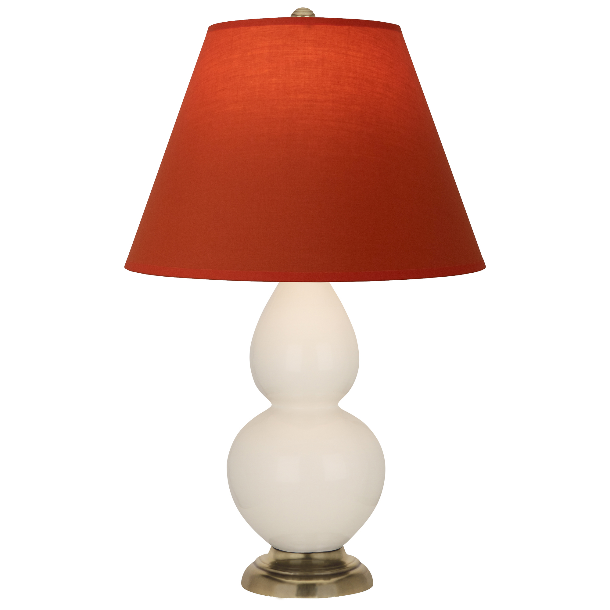 Bone Glazed Ceramic With Antique Natural Brass Finished Accents With Tangerine w/ Taupe Lining Fabric Shade - Our Double Gourd collection features a simple but gracefully curving silhouette. Available in a wide array of vibrant colors and several different base finishes.