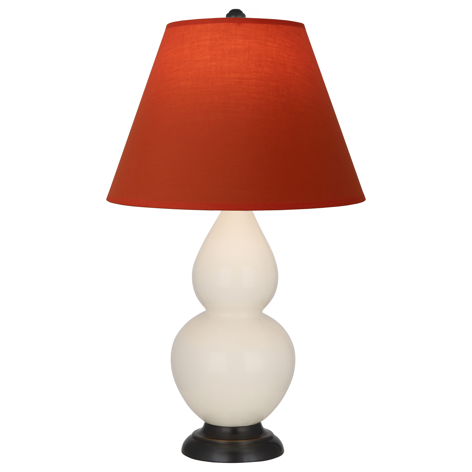 Bone Glazed Ceramic With Deep Patina Bronze Finished Accents With Tangerine w/ Taupe Lining Fabric Shade - Our Double Gourd collection features a simple but gracefully curving silhouette. Available in a wide array of vibrant colors and several different base finishes.