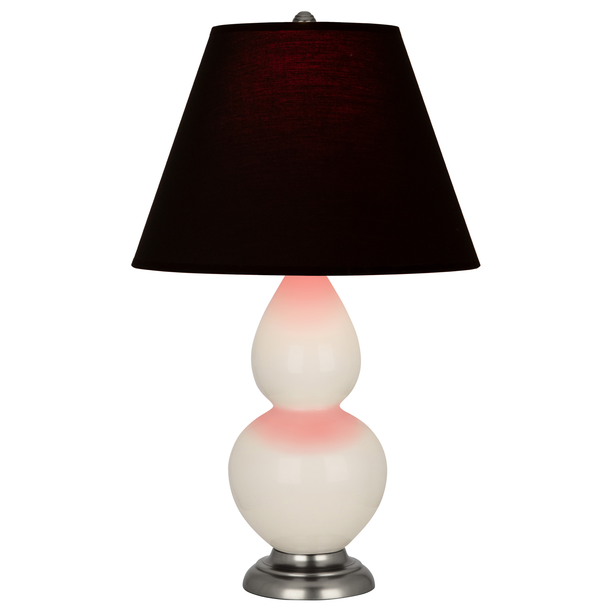 Bone Glazed Ceramic With Antique Silver Finished Accents Small Double Gourd Accent Lamp With Ink Fabric Shade with Rose Red Lining - Our Double Gourd collection features a simple but gracefully curving silhouette. Available in a wide array of vibrant colors and several different base finishes.