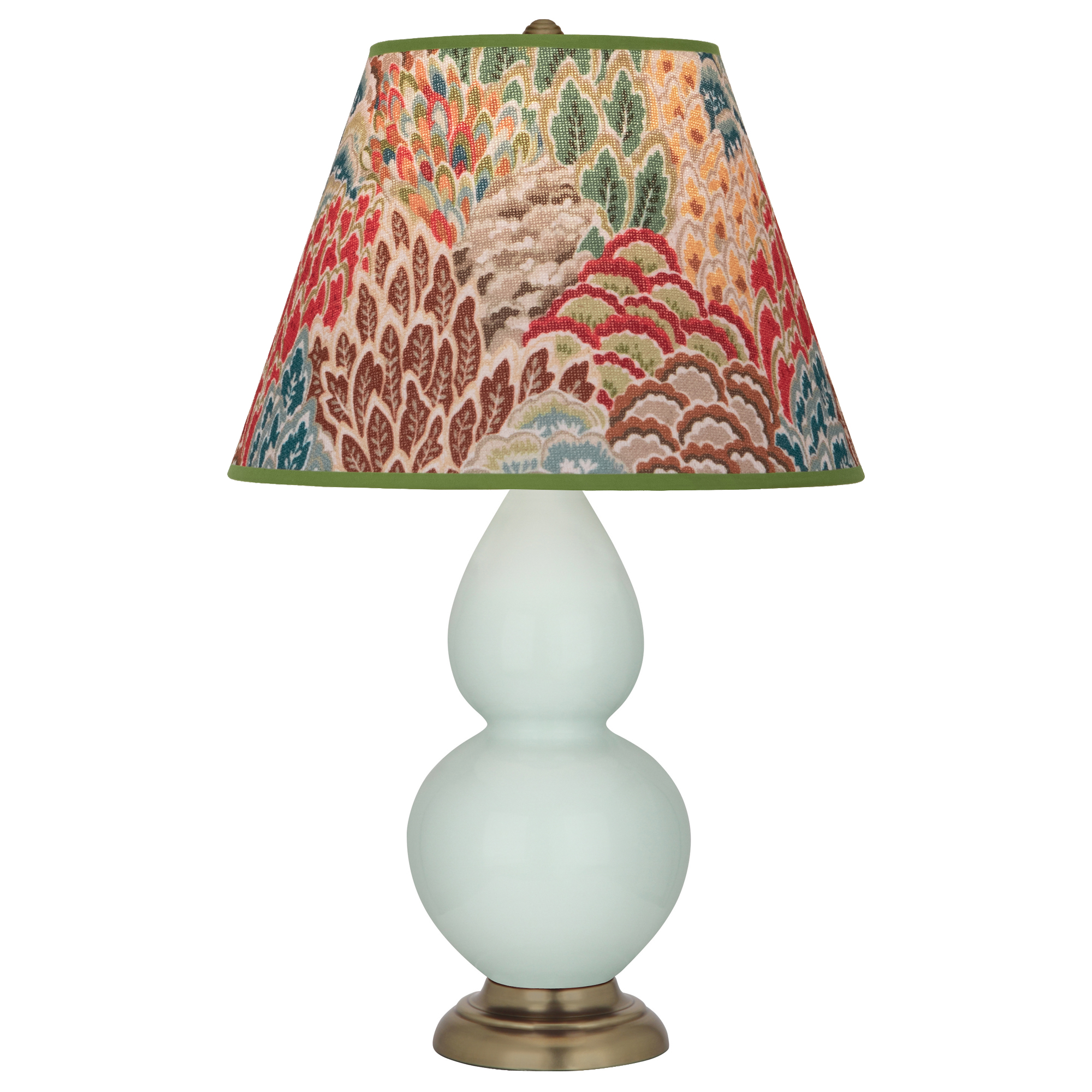 Celadon Glazed Ceramic Small Double Gourd Accent Lamp With Fall Floral Fabric Shade - Our Double Gourd collection features a simple but gracefully curving silhouette. Available in a wide array of vibrant colors and several different base finishes.
