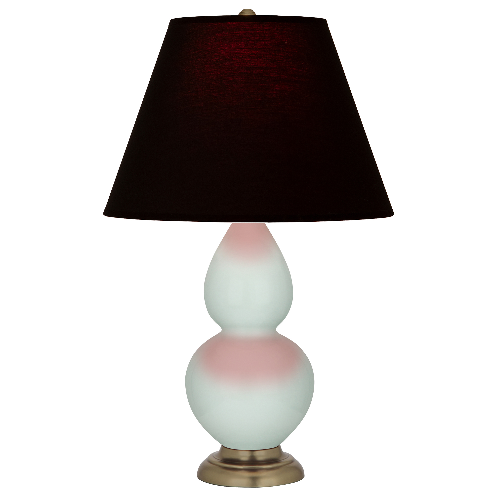 Celadon Glazed Ceramic With Antique Brass Finished Accents Small Double Gourd Accent Lamp With Ink Fabric Shade with Rose Red Lining - Our Double Gourd collection features a simple but gracefully curving silhouette. Available in a wide array of vibrant colors and several different base finishes.