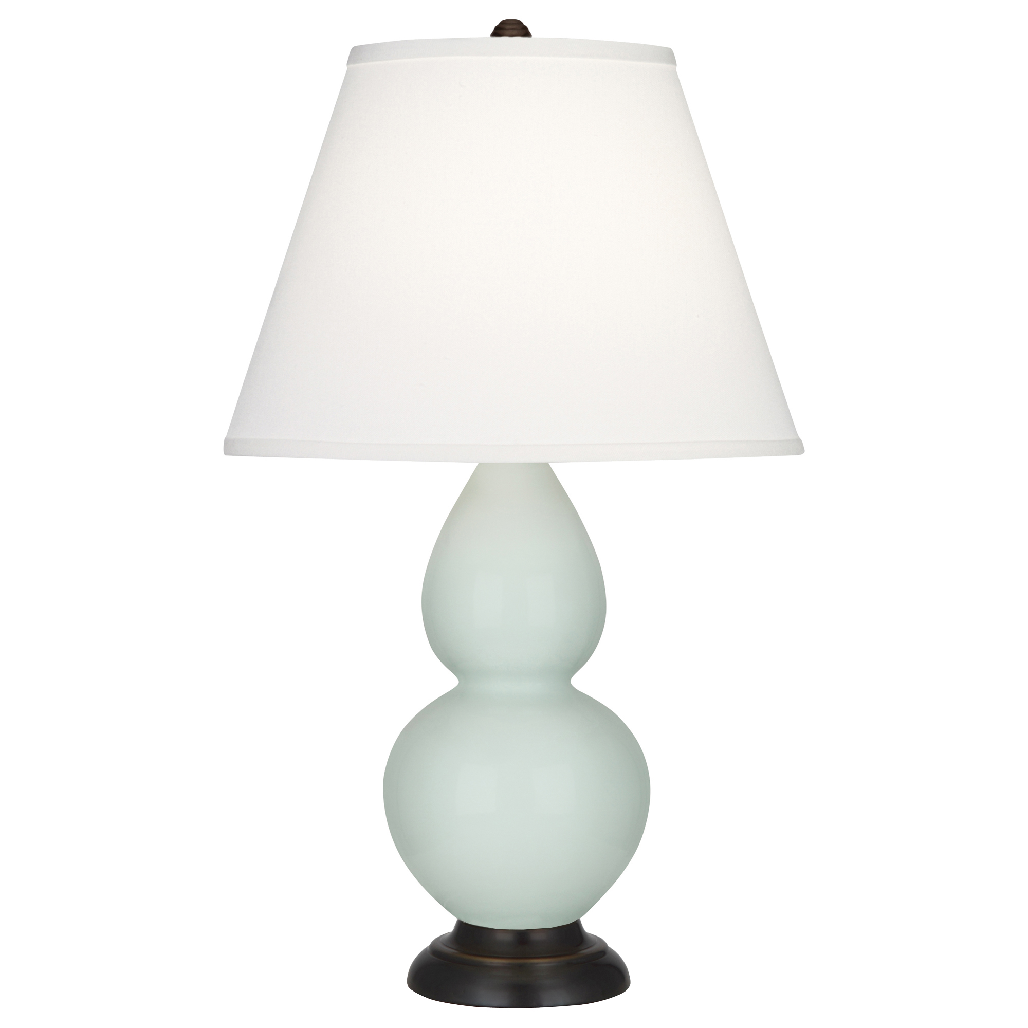 Celadon Glazed Ceramic Small Double Gourd Accent Lamp With Pearl Dupioni Fabric Shade - Our Double Gourd collection features a simple but gracefully curving silhouette. Available in a wide array of vibrant colors and several different base finishes.