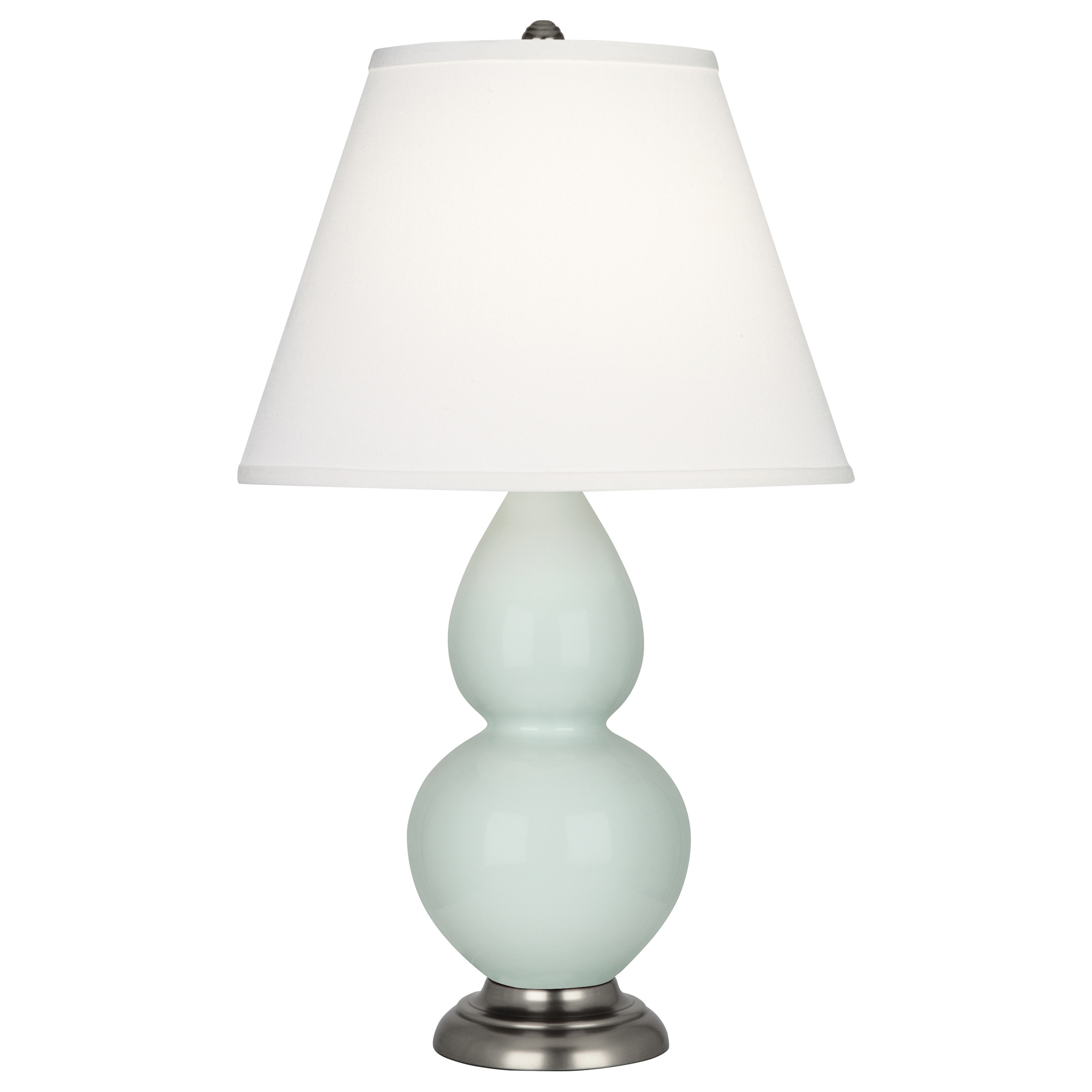 Celadon Glazed Ceramic Small Double Gourd Accent Lamp With Pearl Dupioni Fabric Shade - Our Double Gourd collection features a simple but gracefully curving silhouette. Available in a wide array of vibrant colors and several different base finishes.