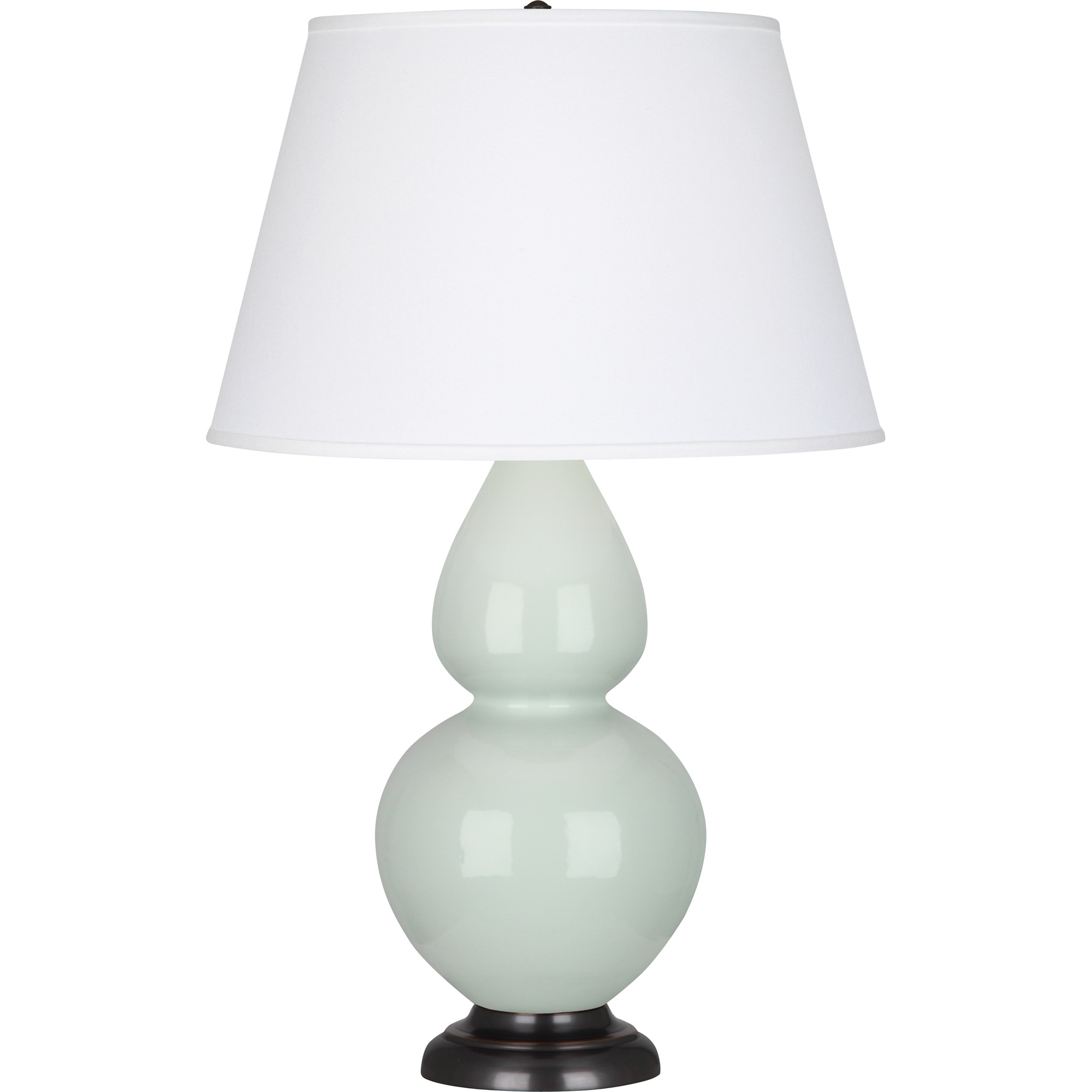 Celadon Glazed Ceramic Double Gourd Table Lamp With Pearl Dupioni Fabric Shade - Our Double Gourd collection features a simple but gracefully curving silhouette. Available in a wide array of vibrant colors and several different base finishes.