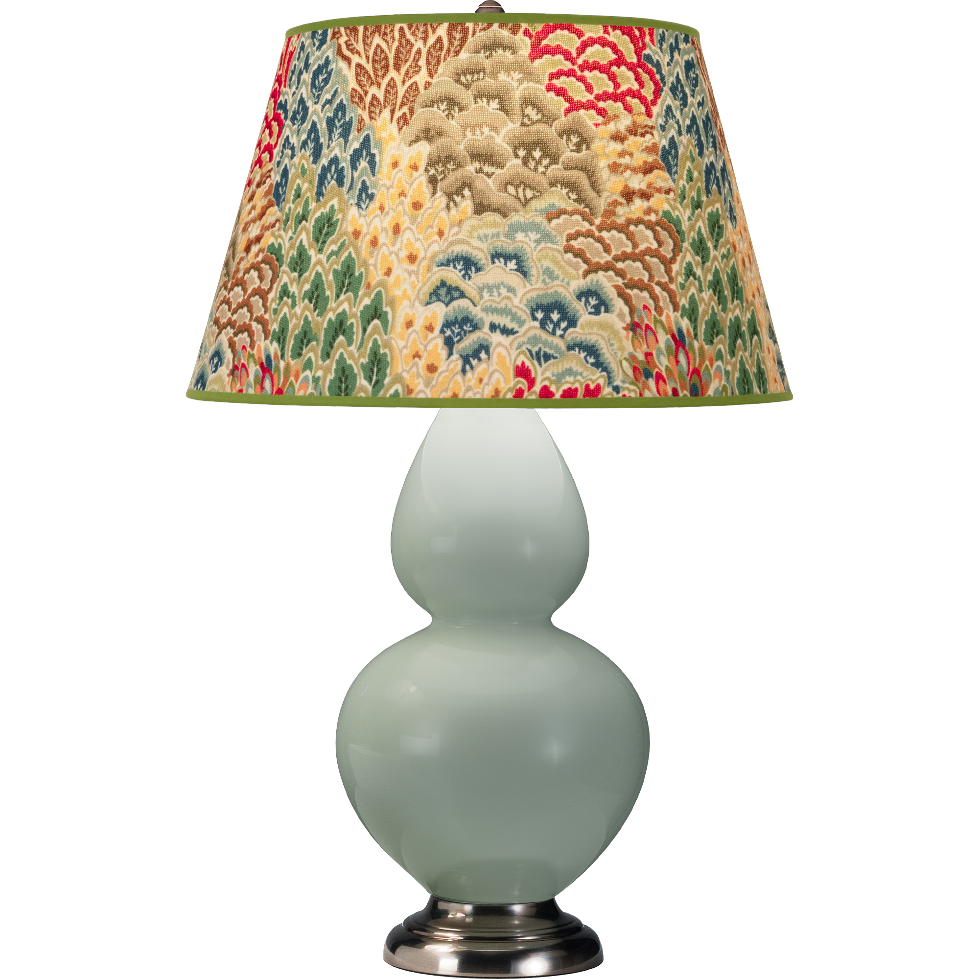 Celadon Glazed Ceramic Double Gourd Table Lamp With Fall Floral Fabric Shade - Our Double Gourd collection features a simple but gracefully curving silhouette. Available in a wide array of vibrant colors and several different base finishes.