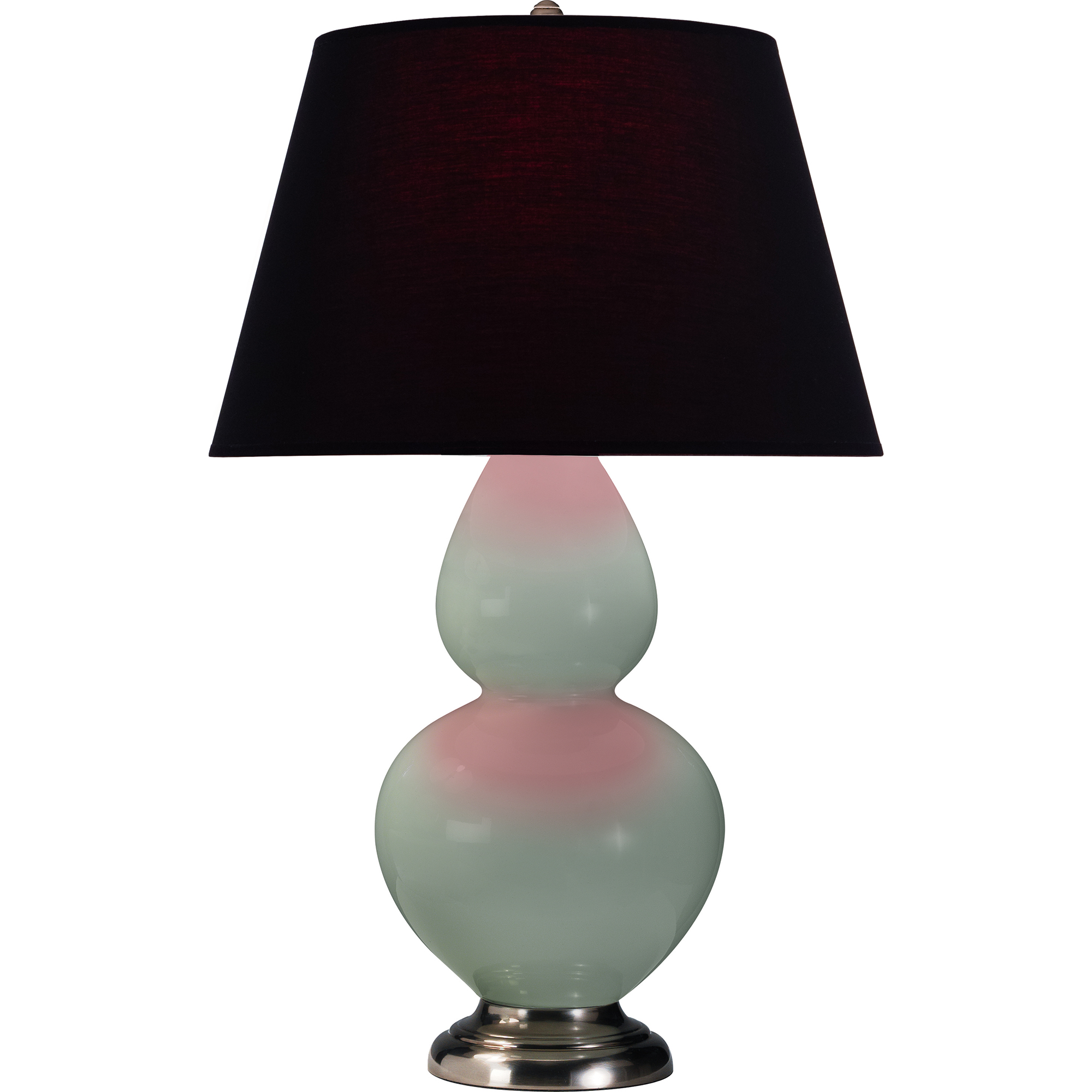 Celadon Glazed Ceramic Double Gourd Table Lamp With Ink Fabric Shade with Rose Red Lining - Our Double Gourd collection features a simple but gracefully curving silhouette. Available in a wide array of vibrant colors and several different base finishes.