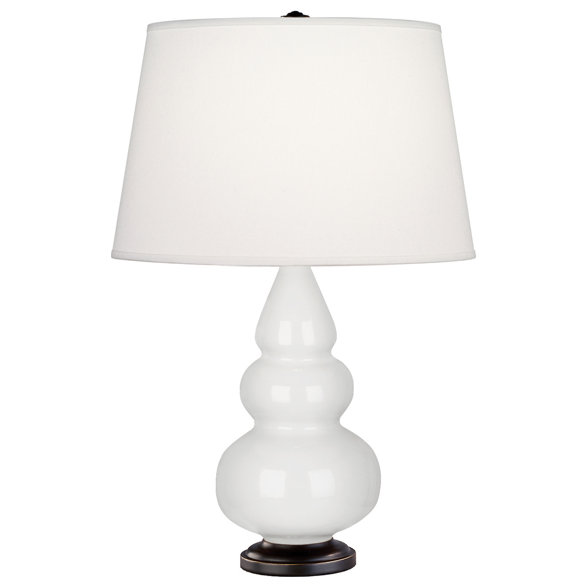 Our Triple Gourd collection features a simple but gracefully curving silhouette. Available in a wide array of vibrant colors and several different base finishes. - Lily Glazed Ceramic With Deep Patina Bronze Finished Accents Small Triple Gourd Accent Lamp With Pearl Dupioni Fabric Shade
