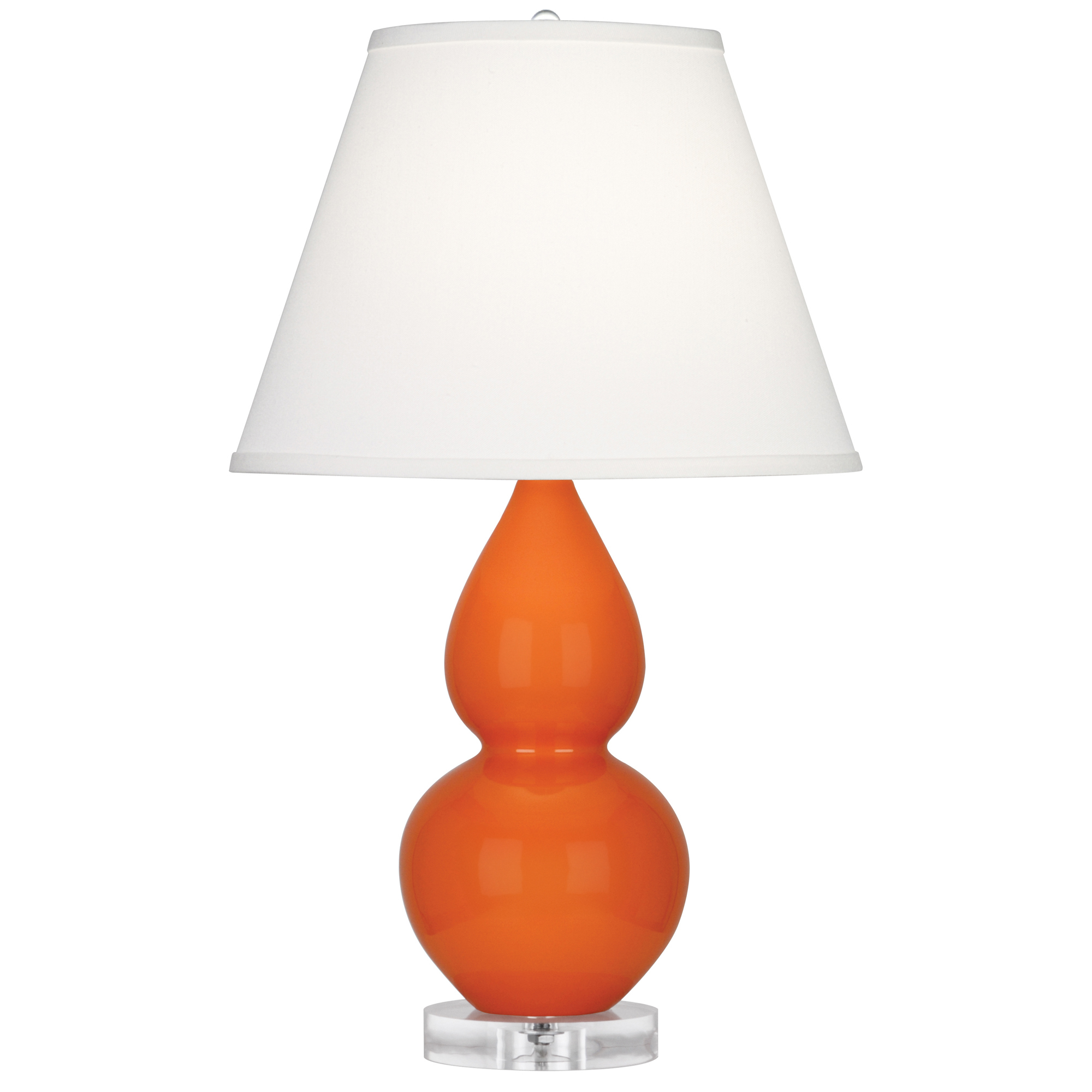 Pumpkin Glazed Ceramic With Lucite Base Small Double Gourd Accent Lamp With Pearl Dupioni Fabric Shade - Our Double Gourd collection features a simple but gracefully curving silhouette. Available in a wide array of vibrant colors and several different base finishes.